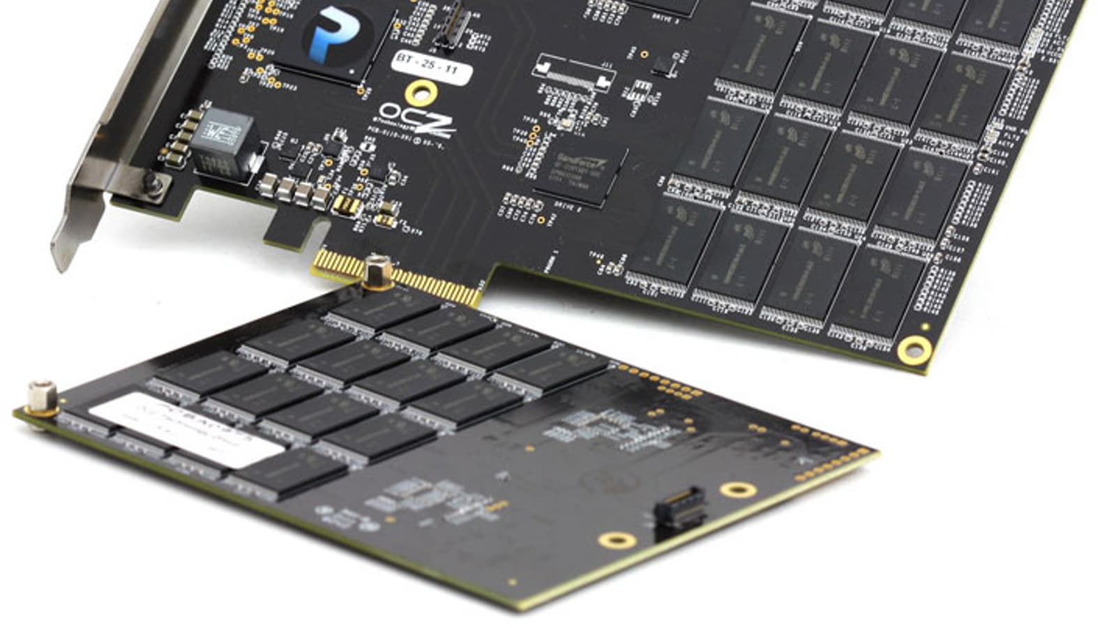 Поэтому менее, чем через год на рынок были выпущены RevoDrive3 и RevoDrive3 X2. Главным усовершенствованием новой модели была замена связки из Sil3124 с мостом на новый SAS-контроллер SuperScale OCZ ICT-0183, изначально поддерживающий PCIe 2.0. Соответственно, те же четыре линии уже обеспечивают пропускную способность в 2 ГБ/с (на практике — скорее 1,6 ГБ/с), т. е. вдвое больше, чем раньше. Ну а для того, чтобы полностью задействовать открывшиеся перспективы, на смену двум/четырем контроллерам SF-1222 пришли два или четыре же SF-2281 с поддержкой интерфейса SATA600. По сути, тот же RAID0, хотя об этом компания предпочитала не упоминать, упирая на использование собственной архитектуры массива, основанной на запатентованном алгоритме балансирования очереди запросов. Но в общем и целом — все тоже четырехкратное чередование на верхнем уровне, умноженное на чередование каналов флэш-памяти после контроллеров, что и обеспечивает высокую производительность. Правда... Не совсем понятно было — зачем? С ноутбуками и прочими компактными ПК эти решения были принципиально несовместимы, а в десктопах или серверах подобный массив из нескольких SSD можно было собрать и самостоятельно.