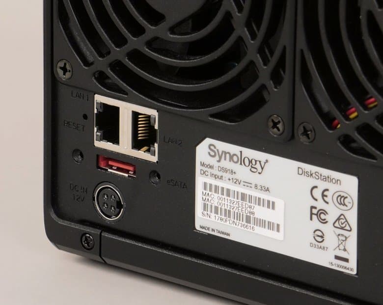 Для охлаждения дисков и процессора используются два вентилятора 92 мм. Они имеют трехпроводное подключение, позволяющее контролировать работоспособность, а также программную регулировку скорости вращения. По уровню шума устройство, как это обычно бывает у Synology, получилось очень тихим, оно не доставит неудобства не только в рабочей офисной обстановке, но и дома.