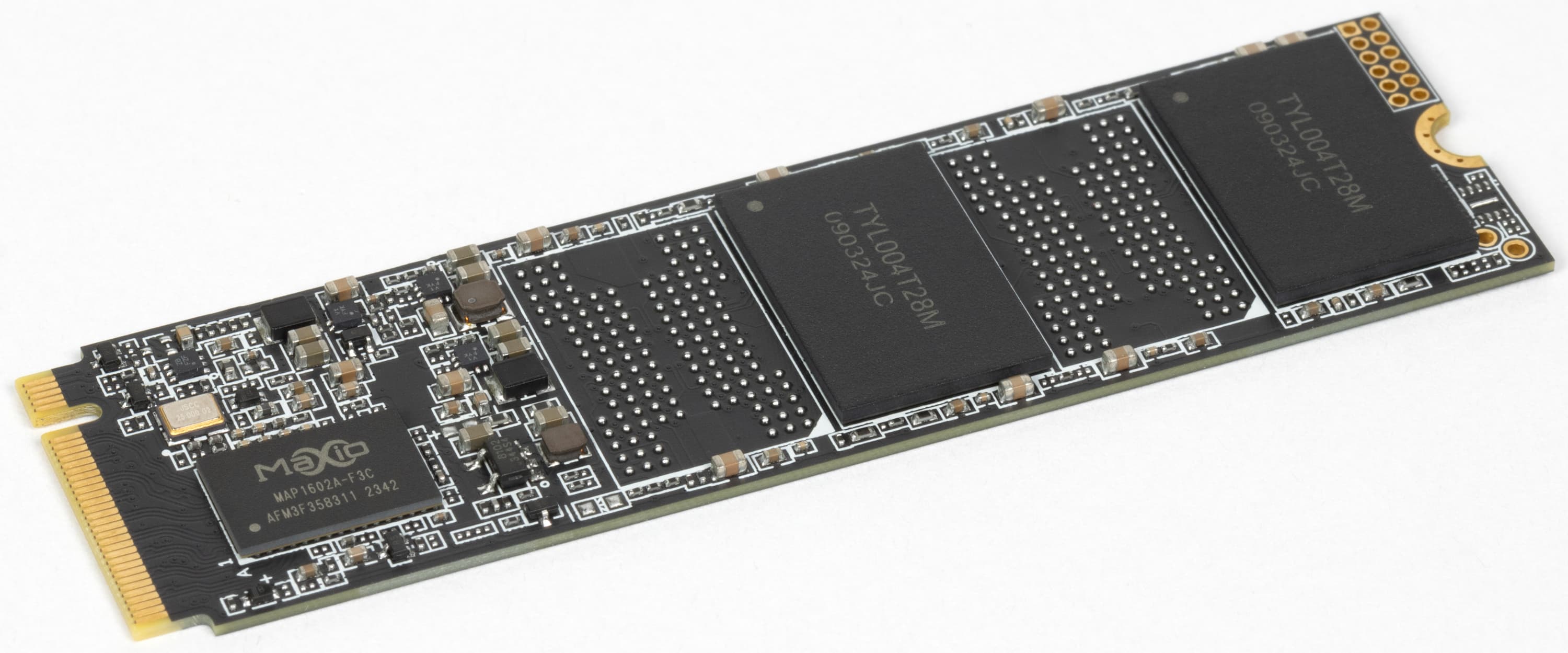 Почему мы упомянули именно YMTC? Подходящих для C-серии платформ со скоростью 7 ГБ/с четыре, однако это точно не InnoGrit IG52220, поскольку он используется в I-линейке, и не Phison E27T. Последнее вообще очень тонко, но SSD на Phison E27T в ассортименте тоже есть и называется Classic PCIE 4.0 DL — значит, в C45 должно быть что-то другое, поскольку незачем делать две одинаковых модели одной линейки с разными названиями. Наиболее вероятны, стало быть, Maxio MAP1608 в C45 и MAP1602 в C47. База для таких рассуждений очень зыбкая, но на деле именно последний в паре с 232-слойной TLC-памятью YMTC в C47 мы и нашли. И, самое главное, ничего другого в этой модели пока никому другому тоже не попадалось.