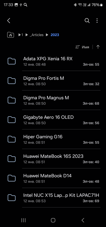 Диск в составе Terramaster D6-320 определяется автоматически; он обозначен на левом экране как «USB-накопитель 1». На правом экране — содержание архивной папки с некоторыми обзорами, опубликованными на нашем ресурсе в 2023 г. Подобным образом можно создавать резервные копии фото, видео, музыки, книг и других цифровых материалов, хранящихся на смартфонах и планшетах. В рассматриваемом варианте это просто, быстро и понятно. В то же время для организации такого рода доступа к серверу или NAS, функционирующих под ОС, отличных от Windows (MacOS), потребуется установка специальных драйверов и настройка служб, а соответствующими навыками неискушенный пользователь вряд ли обладает.