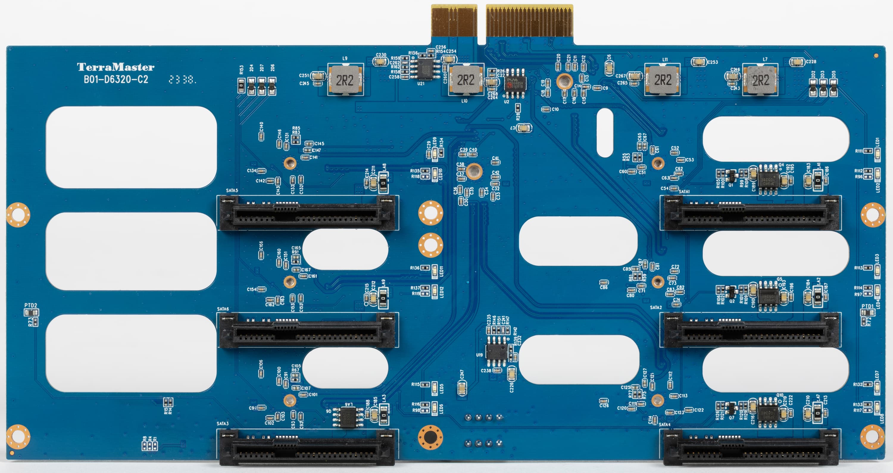 TDAS D6-320 обладает шестью отсеками с интерфейсами SATA для установки жестких дисков или твердотельных накопителей типоразмеров 3,5 дюйма или 2,5 дюйма.