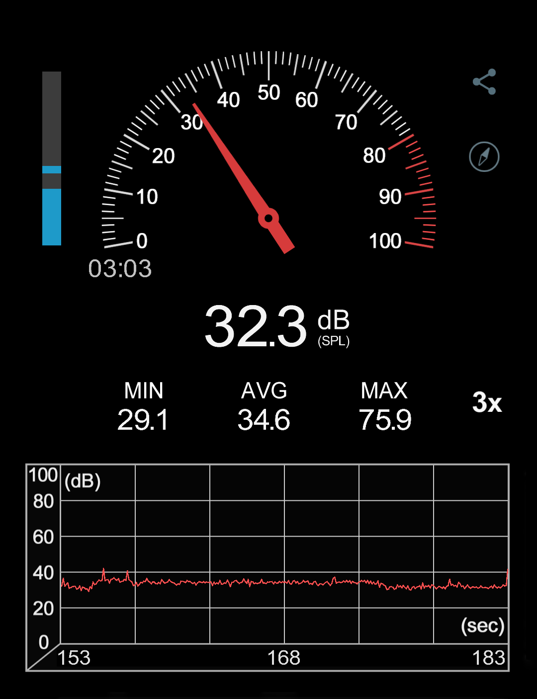 Полученные 32,3 дБА несколько выше того, что обещает производитель (вероятно, производивший измерения для массива из SSD-накопителей).