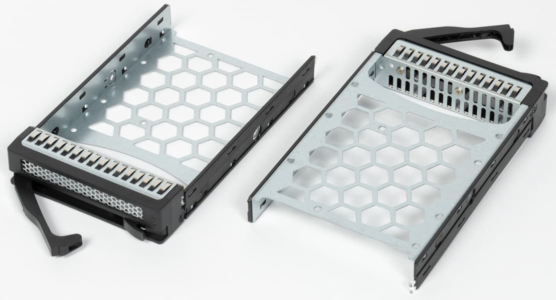 Корзины для накопителей имеют спереди большие защелки (без замков) и устанавливаются внутри корпуса устройства вертикально по три в два этажа. Каждая корзина и передняя пластмассовая накладка корпуса имеют отверстия, через которые внутрь корпуса поступает забортный воздух.