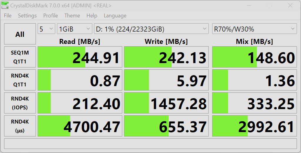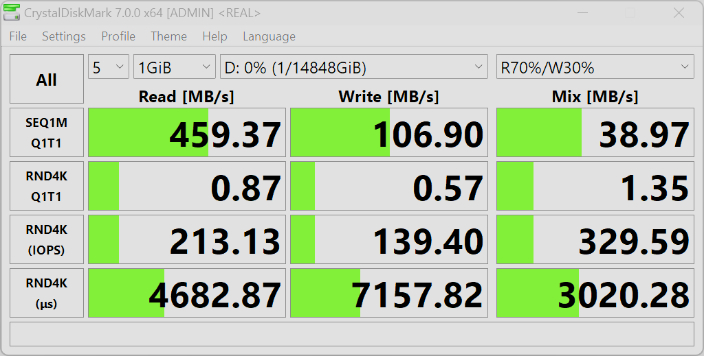 «Дежурные» испытания утилитой CrystalDiskMark по-прежнему можно использовать для примерной оценки, но, к сожалению, это не слишком верно отражает реальное положение дел.
