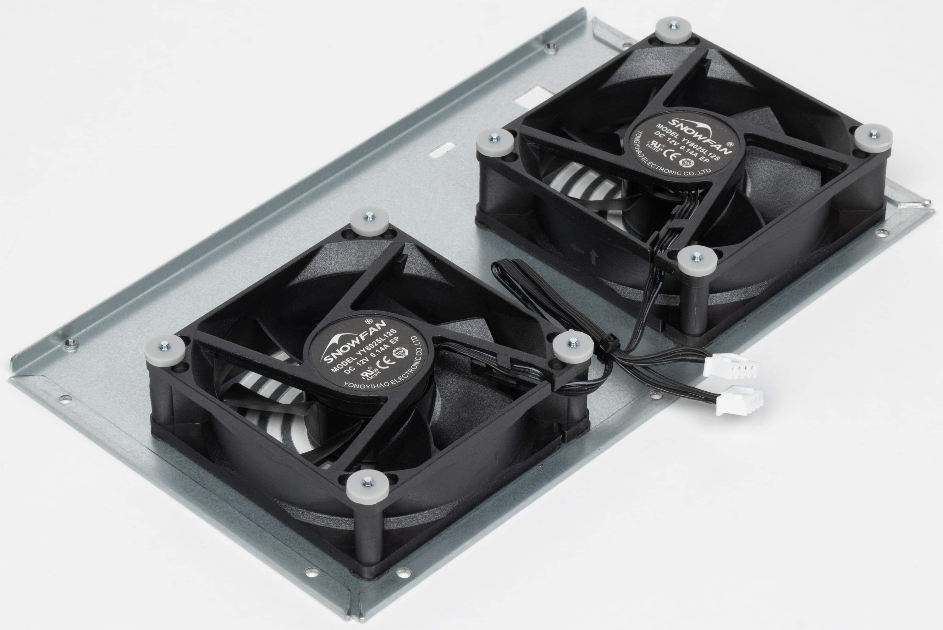 Два 8-сантиметровых вентилятора подключаются к ответным разъемам на задней плате. Подразумевается, что они работают в паре. Регулировка скорости вращения не предусмотрена.