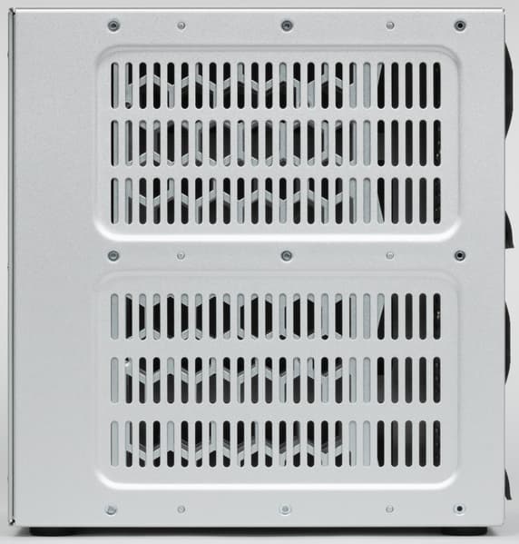 Левую боковую панель прорезают многочисленные щели для забора воздуха.