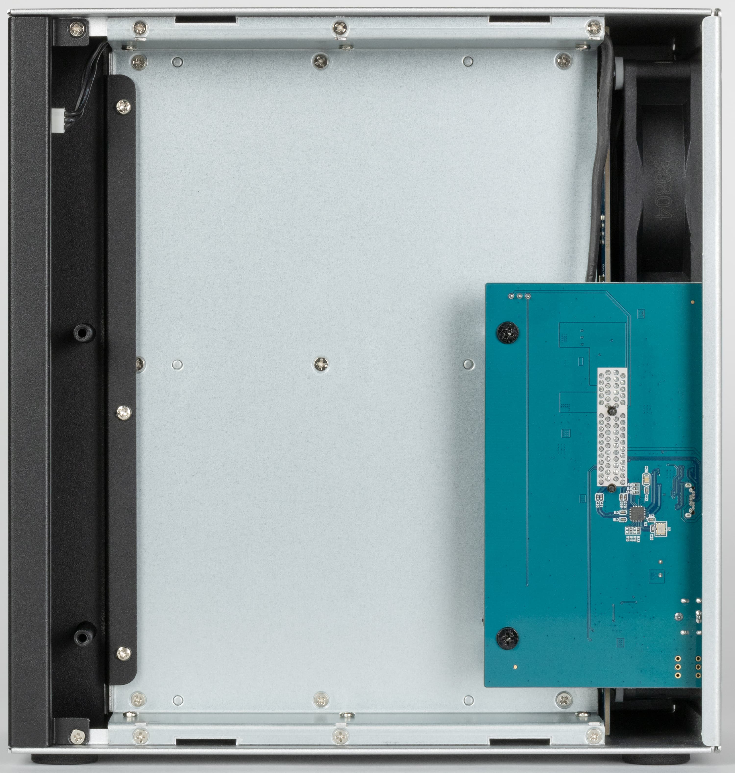 Разъемы SATA и питания смонтированы на внутренней задней панели, установленной внутри корпуса вертикально.