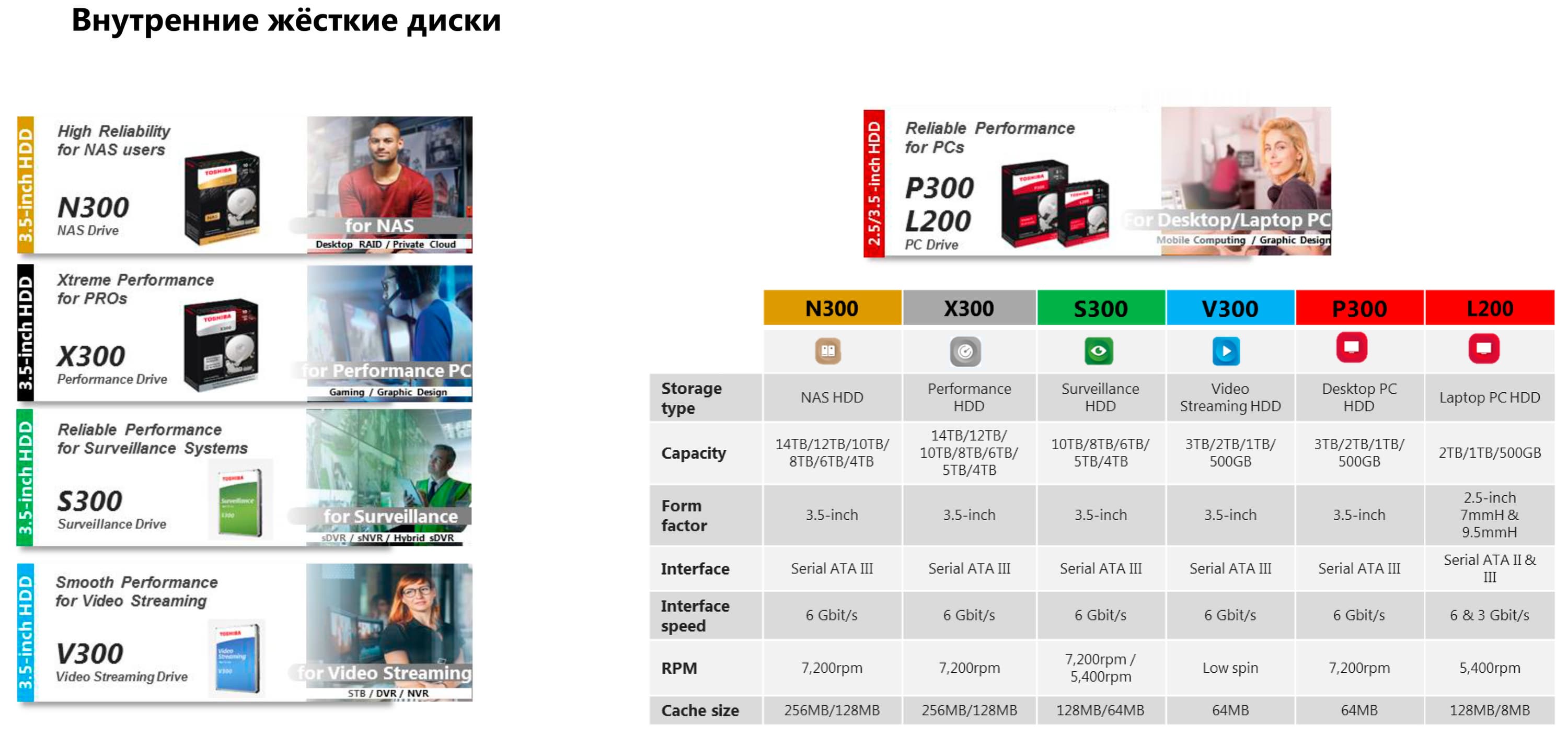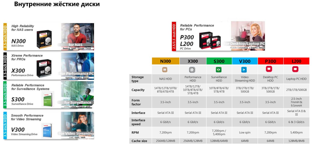 А есть еще более банальные внутренние модели винчестеров — с которыми вообще все знакомы с давних пор. И единственное, что этому направлению дал технический прогресс — более четкое позиционирование по сферам применения. Впрочем, когда NAS уже были, а «специальных» дисков для них еще не было, все спокойно использовали «обычные компьютерные». А «специальные» появились уже явочным порядком — когда NAS стало много и появился стимул заставить покупателя обратить внимание на какие-то линейки. И так во всех сегментах. Не везде, правда, это работало: ноутбучные винчестеры, как видим, так и остались просто ноутбучными — и вообще не эволюционируют (но об этом чуть позже).