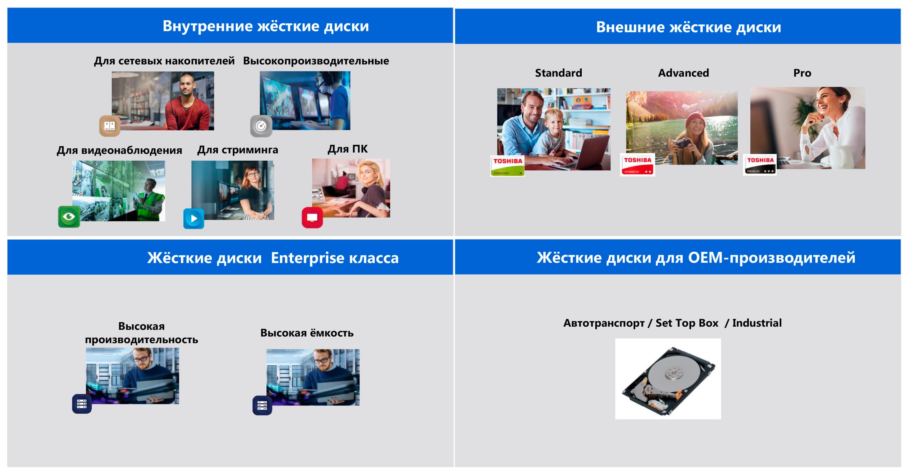 Поскольку, если так вкратце посмотреть на ассортимент Toshiba, то принципиальных отличий от «времен роста» мы на первый взгляд особо не увидим.