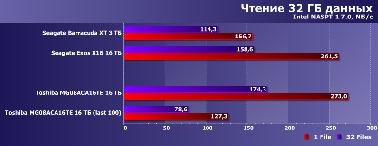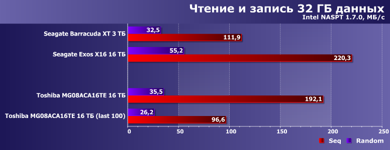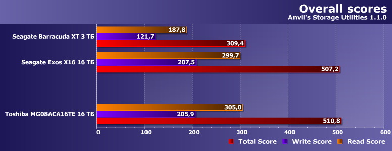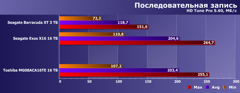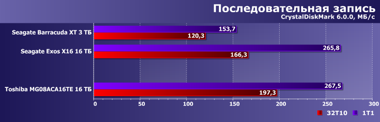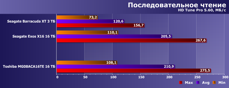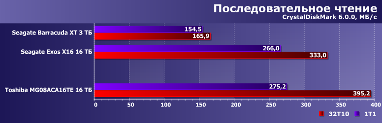 | Seagate Exos X16 ST16000NM001G | Toshiba MG08ACA16TE | Seagate Barraсuda XT ST33000651AS | |