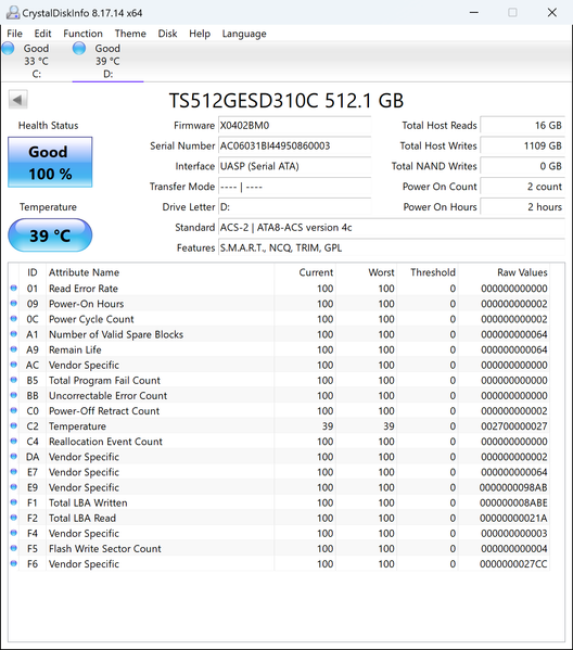 | Transcend ESD310 512 ГБ (X0402) | 638,4 | 642,1 |