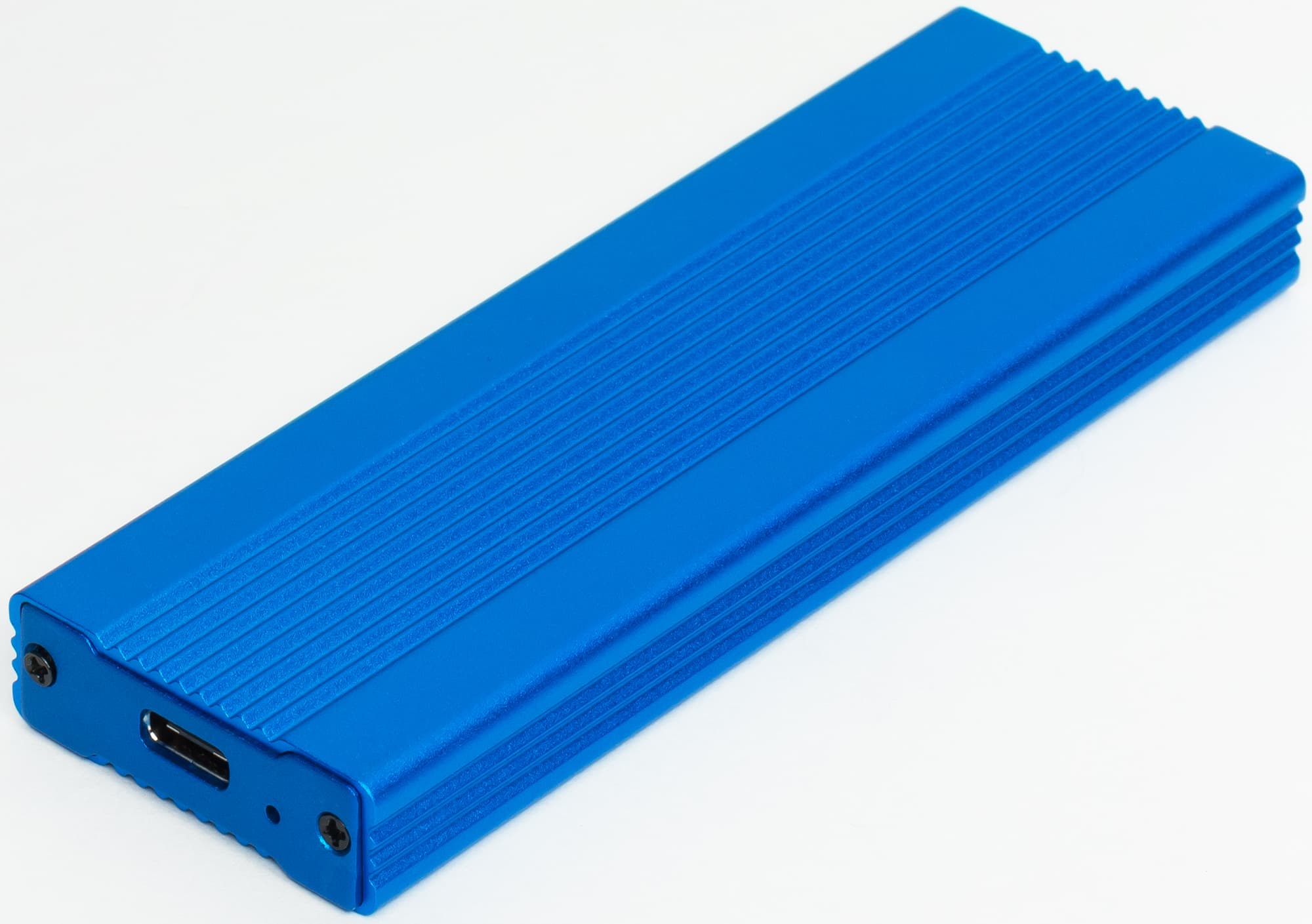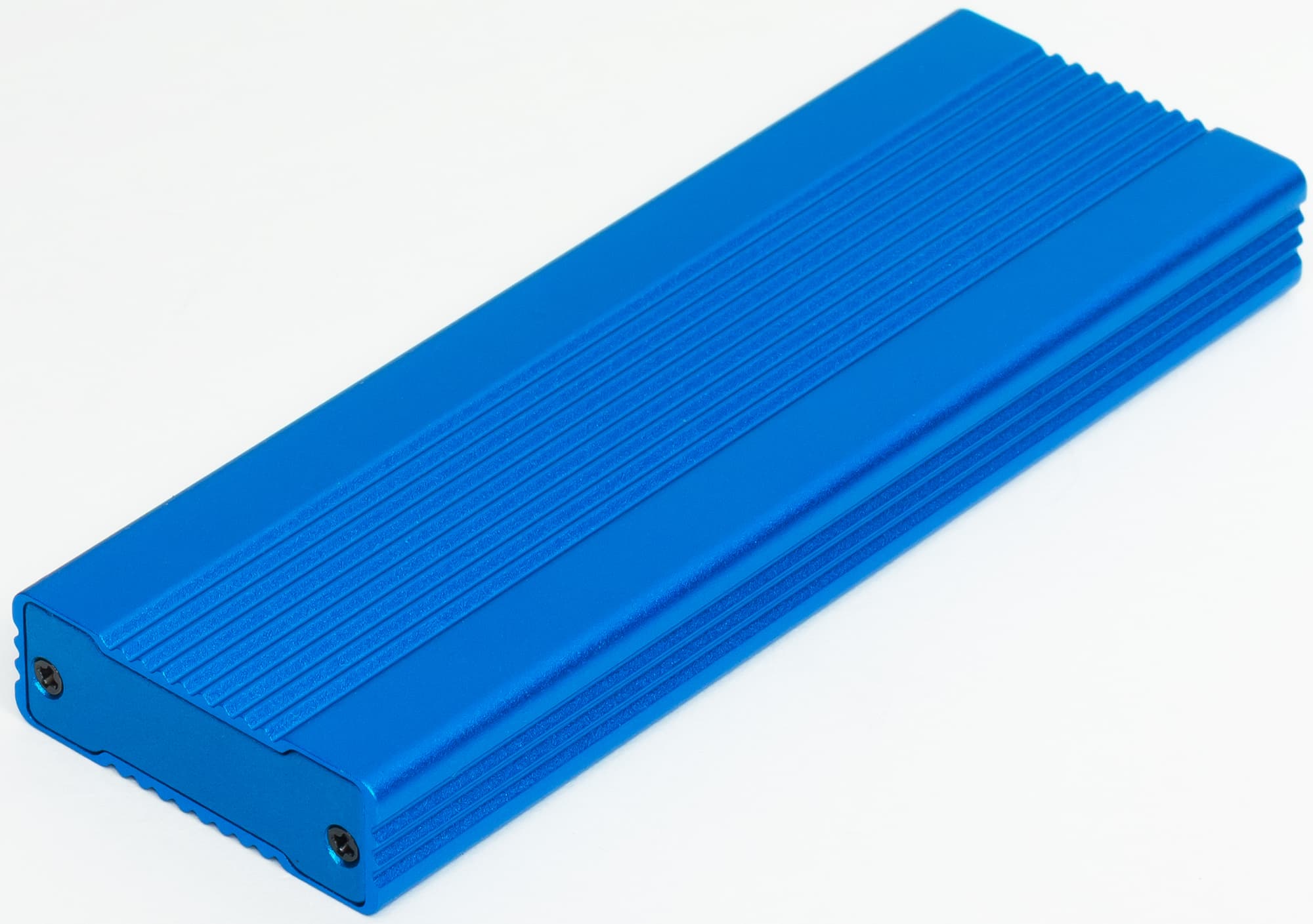 Устройства выглядят как братья (пусть и не близнецы): солидный брусок из анодированного алюминия с закрепленными болтиками торцевыми крышечками. Коробочка на JMS583 покрупнее: 125×40×10 мм. На ASM2362 — компактнее: 105×35×12 мм.