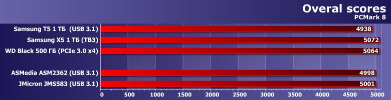 Вот так уже лучше — и больше похоже на правду. На рекорды, впрочем, не тянет — поскольку мы уже видели Thunderbolt :) С другой стороны, Х5 и среди накопителей с этим интерфейсом самый быстрый — многие как раз на ≈1 ГБ/с только и рассчитаны. А столько мы можем получить и от USB 3.1 — куда дешевле и с сохранением совместимости со старыми версиями USB. Понятно, что ценой потерь в скорости — к примеру, на порту USB 3.0 (не говоря уже о 2.0) разницы с тем же Т5 (и другими реализациями USB—SATA) не будет вовсе. Но если «под рукой» уже есть системы, где этим можно воспользоваться — можно и доплатить. Или пока не спешить, а подождать снижения цен как на сами SSD, так и (возможно) на коробочки. Главное, что способ почти удвоить производительность есть — и не только в теории.