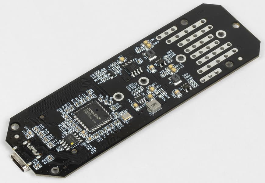 Для начала нужно было определиться с «рабочим телом» — причем подобрав что-нибудь мощное и для дальнейших тестов. А лучший способ получить гарантированную скорость — собрать накопитель самостоятельно: из внутреннего SSD топового уровня (чтоб заведомо не был узким местом) и отдельной коробки. Тем более, что на данный момент особого разнообразия подходящих USB-мостов все еще не наблюдается — все продукты на рынке используют ASMedia ASM2364. Неважно — будет это «законченный» внешний SSD или только корпус — все построены на одной элементной базе. Только во втором случае выбор побольше. Тем более, что мы сразу же определились с SSD — решено было использовать для тестирования WD Black SN850 2 ТБ. Он один из самых быстрых — но также и один из самых «горячих» накопителей на рынке.