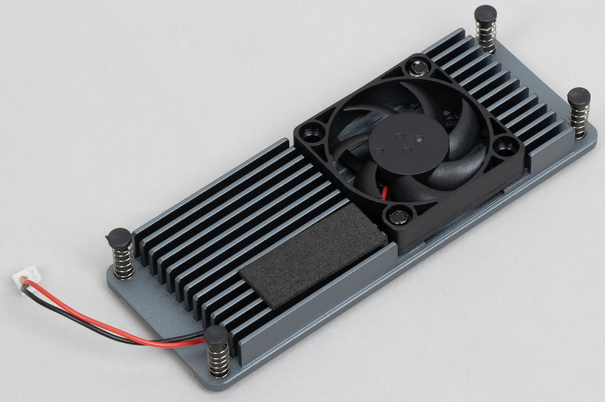 Поэтому и была выбрана подобная конструкция — снабженная массивным радиатором и небольшим вентилятором, устанавливаемым поверх SSD.