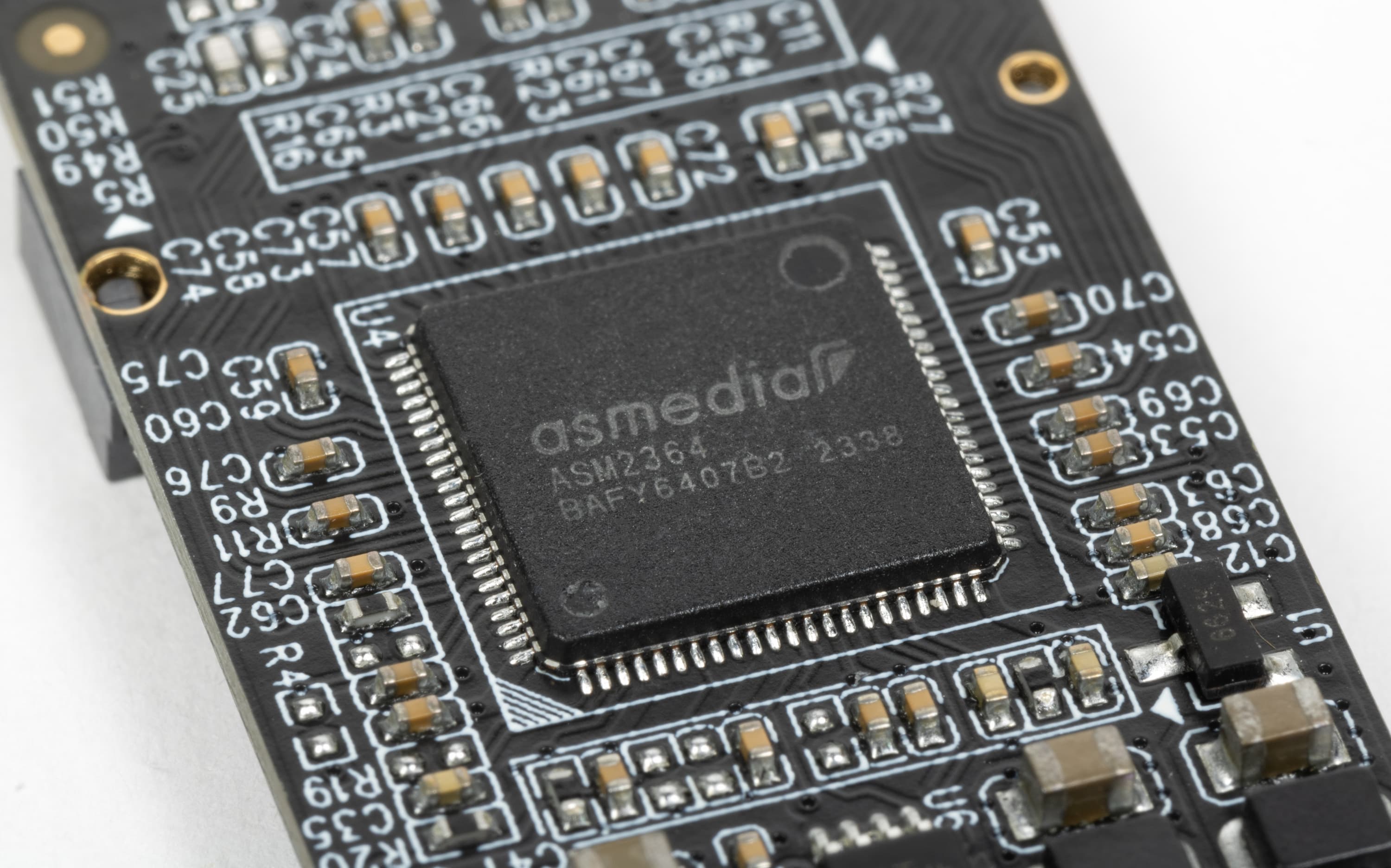 Что в недорогих продуктах встречается редко, так это ASMedia ASM2362. В брендовых внешних SSD или, например, картоводах для карт CFexpress он попадается, но вообще от какой-то серьезной конкуренции отказался сам его разработчик. В ASMedia рассудили просто — раз уж в сегменте Gen2 стало тесно, лучше с него тихонько уйти, сделав упор на USB 3.2 Gen2×2. А ASM2364, отличающийся от предшественника как раз поддержкой «сдвоенного» интерфейса, долгое время конкурировать было не с кем. Если только с Thunderbolt-мостами Intel, но они «играли» в совсем другом ценовом классе, да и страдали от гораздо меньшей универсальности — «встроенная» USB-совместимость (на уровне Gen2 и ниже) появилась только в JHL8440, а JHL7440 позволял реализовать ее дополнительным мостом, типа какого-нибудь JMicron JMS583 (с практической реализацией такой многоуровневой системы мы тоже уже давно знакомы). У ASMedia ASM2364 таких проблем не было, цены изначально были ниже, да и интерфейс тогда еще воспринимался как перспективный — вот и началось победоносное шествие по всем сегментам рынка: его ставили и в дорогие внешние SSD крупных и не очень брендов, и в относительно дешевые USB-коробочки кого попало. Не так давно даже начали появляться корпуса для M.2 2230 на этом чипе, так что высокая скорость теперь доступна и в очень компактном исполнении. Благо сейчас ASM2364 еще немного подешевел — это уже не топовое решение компании.