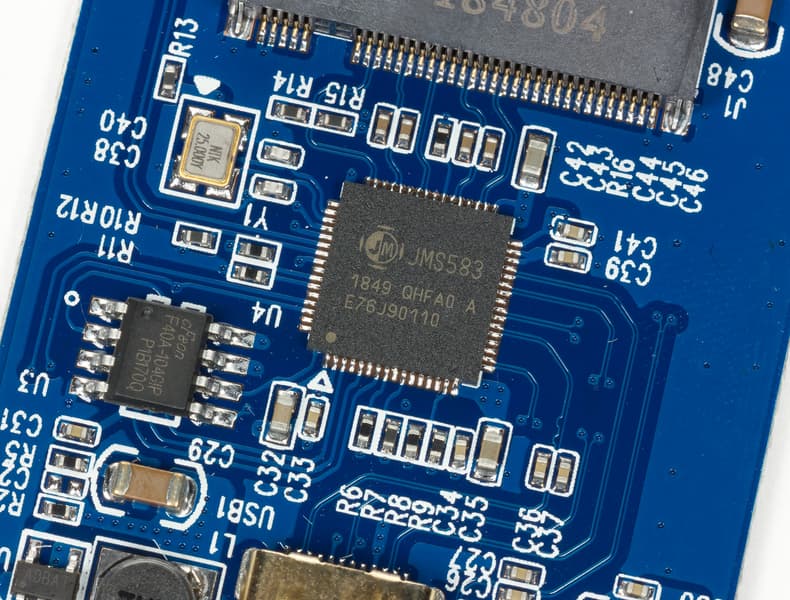 Самый экономный же вариант — ограничиться USB3 Gen2. Все три с половиной подходящих моста нами уже хорошо изучены, благо новинками никто из них не является. «Половина» появилась от того, что Realtek сначала выпустил RTL9210, функционально идентичный продуктам JMicron и ASMedia, а затем модифицированную версию такового — RTL9210B, поддерживающую не только NVMe-накопители, но и SATA. Оригинальный RTL9210 сейчас на рынке почти и не встречается, зато RTL9210B заполонил почти весь AliExpress. Где, впрочем, по-прежнему заметен и JMicron JMS583 — первенец направления, появившийся более пяти лет назад. До сих пор не утративший актуальности в тех случаях, когда достаточно USB3 Gen2.