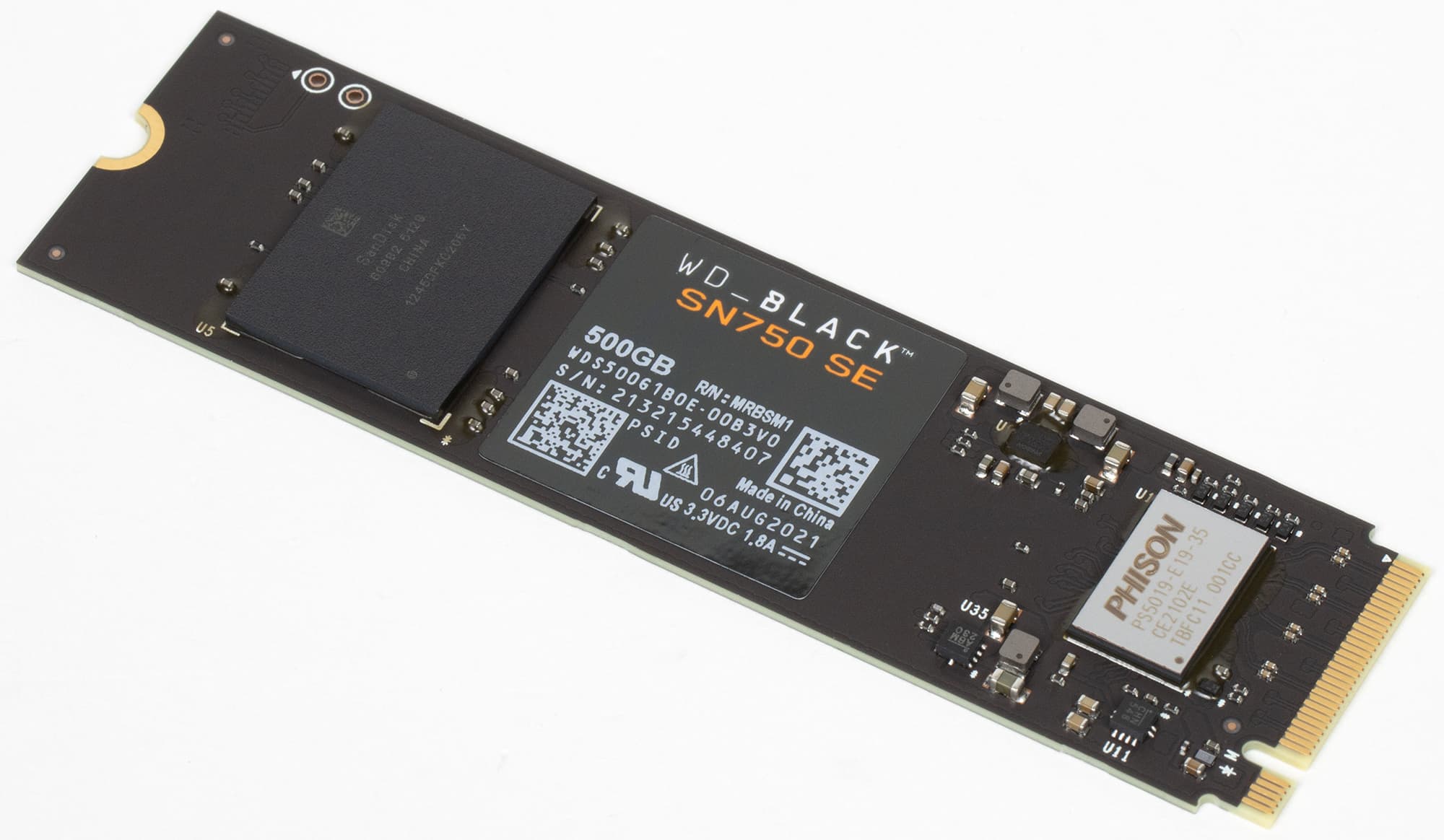 Или кое-что — в частности, как и все Black, это NVMe-накопитель. Более того — как и SN850, он поддерживает PCIe Gen4. Даже странно, что компания избежала соблазна назвать его SN850 Lite. С другой стороны, оба хуже. Поскольку вообще все остальные WD Black строились на мощных восьмиканальных контроллерах с DRAM-буфером (даже самому первому мешала именно память, а никак не контроллер) — а в SN750 SE безбуферный четырехканальный. Такие WD использует в линейках Green и Blue, где они более чем к месту, но в топовой линейке... выглядит странно. Тем более, конкретный Phison E19T.