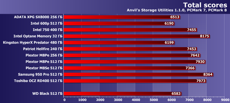 В целом, по низкоуровневой оценке, WD Black, конечно, обгоняет SATA-устройства, да и некоторые NVMe-модели, но не более того.