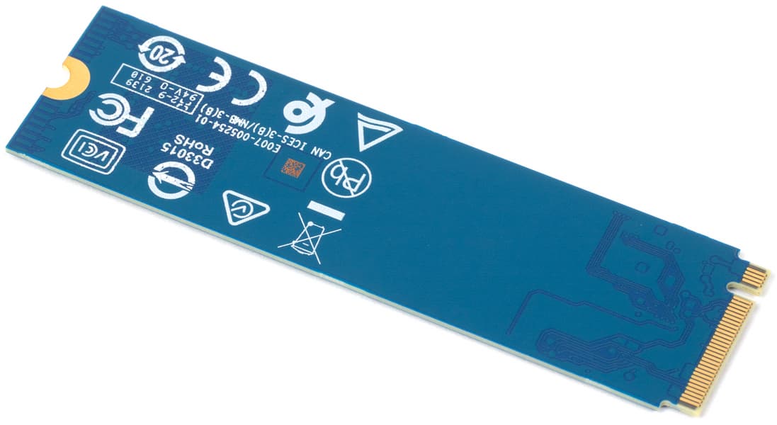 Внешне же тут оценивать нечего — как уже было сказано выше, внешность массовых NVMe SSD WD сильно отличается от большинства накопителей на рынке, но вот друг от друга они практически никак не отличаются. Основных чипа два — в одном вся флэш-память, в другом контроллер. У SN500 они располагались рядом, так что «ненужный» текстолит в принципе можно было даже просто отпилить для «впихивания» SSD в слоты, более короткие, чем массовый M.2 2280, но, начиная с SN550, такая возможность отпала. Микросхемы на одной стороне платы, но в разных ее концах. SN350, SN770 и даже «не совсем свой» SN750 SE выглядят так же. А вот топовые модели похожи на SSD остальных производителей.