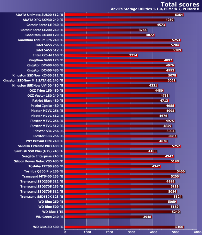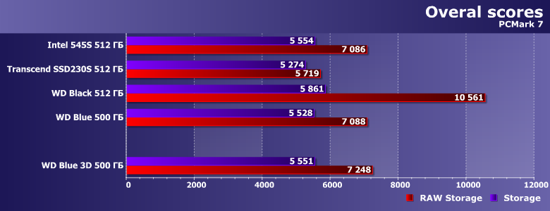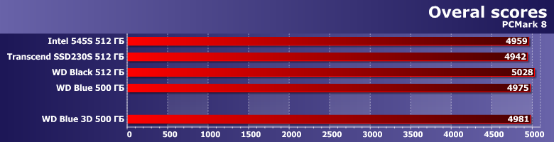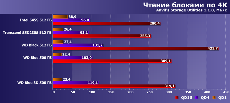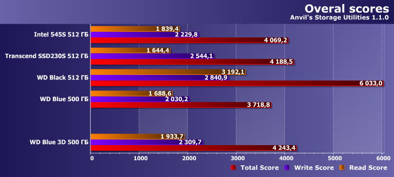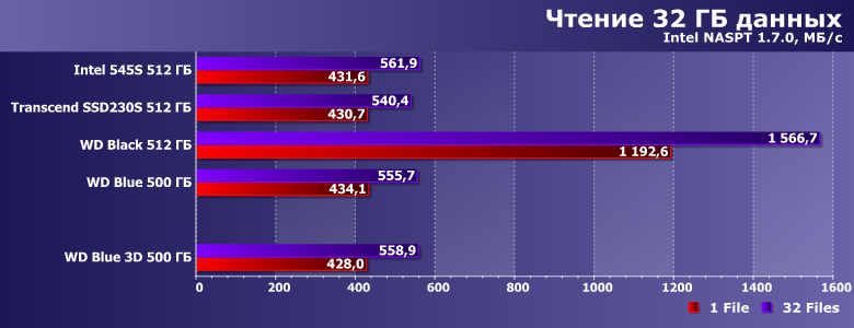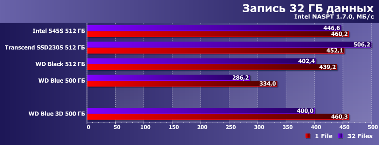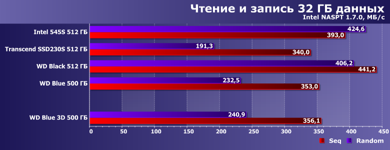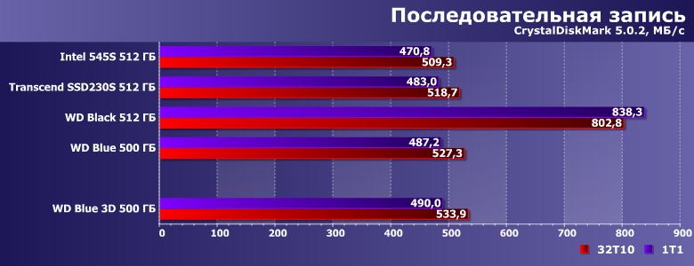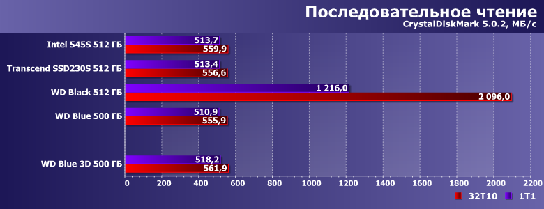 | Intel 545s 512 ГБ | Transcend SSD230S 512 ГБ | WD Black 512 ГБ | WD Blue 500 ГБ | WD Blue 3D 500 ГБ |