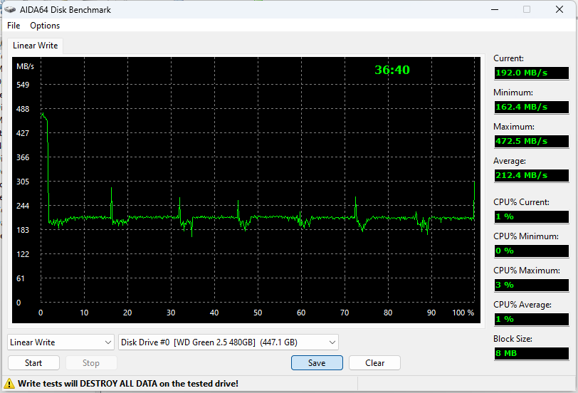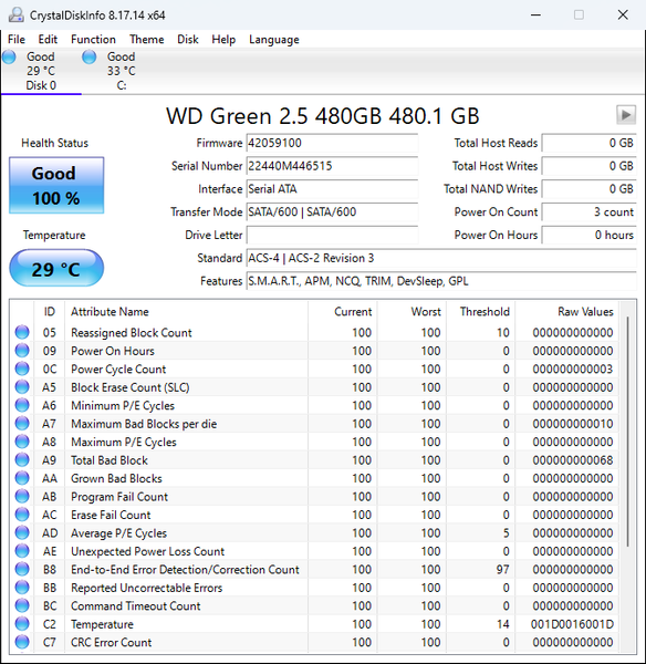 | WD Green 480 ГБ | 551,2 | 551,2 |