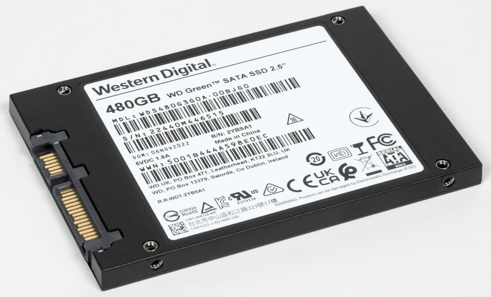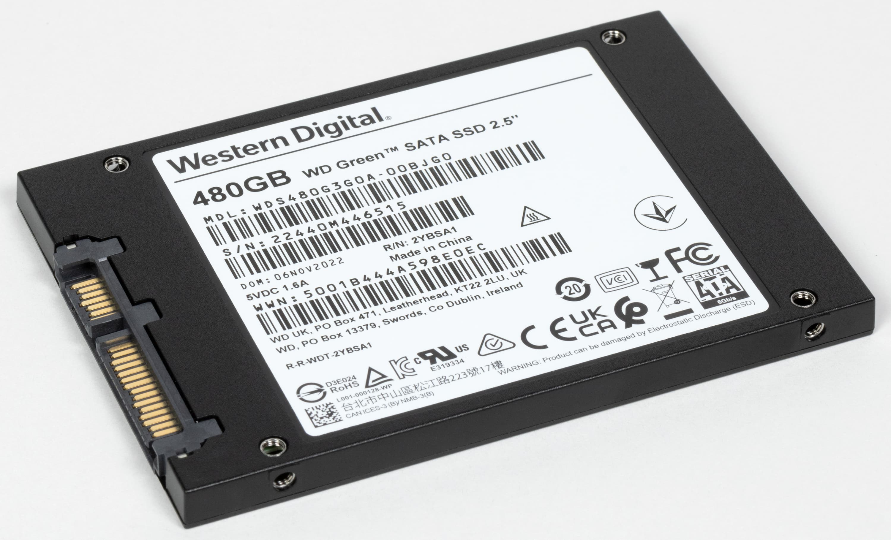 Дополнительная информация тут тоже не слишком нужна. Ключевым отличием Green от Blue всегда была трехлетняя, а не пятилетняя гарантия, однако в условиях параллельного импорта и то, и другое как правило продается в наших краях лишь с годичной. Что любопытно — для третьей версии Green, продающейся сейчас, что можно определить по цифре после емкости (то есть «G3» или «T3»), компания даже не специфицирует «разрешенный» объем записи (TBW). Для пугающей многих второй версии (первая-то использовала контроллер Silicon Motion SM2258XT, так что слабо отличалась от бюджетки других производителей — но было это пять лет назад) при такой емкости прописывали 160 ТБ. В общем, довольно типичные для этого сегмента 0,31 DWPD. Вряд ли сейчас что-то должно было измениться, да и обращаться к WD напрямую за гарантией возможность всё равно пропала — так бы любопытно было погонять SSD «на протирание» и потребовать замену, если не переживет три года такового: ограничений-то формально нет :) Модельный ряд по-прежнему начинается со 120 ГБ и заканчивается 2 ТБ, причем SSD до 480 ГБ включительно можно приобрести и в виде M.2 2280. Такие SATA-накопители тоже уже стали вымирающими — так что есть дополнительный повод посмотреть на оставшиеся в продаже варианты. Иногда они нужны — именно для модернизации старых компьютеров, конечно, хотя иногда такие разъемы встречаются и в относительно новых.