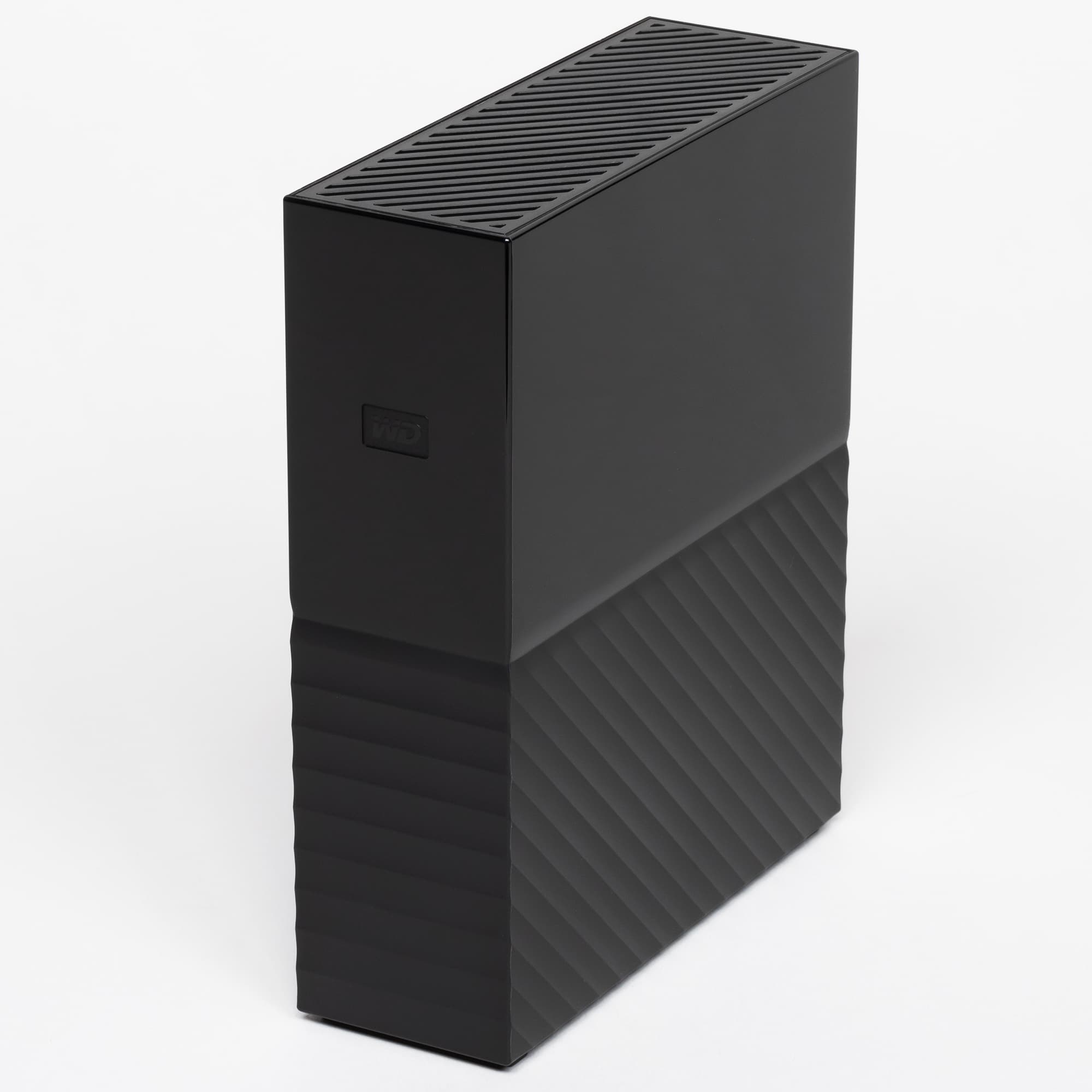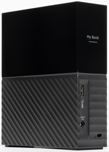 Другой вопрос, что в последнем случае портативность не нужна. Равно как и когда внешний винчестер стоит себе на столе — постоянно подключенным к стационарному компьютеру или регулярно используясь вместе с ноутбуком. Розетка при этом «под рукой» есть, размеры не мешают. Емкость же и скорость у стационарных жестких дисков выше, а цена в пересчете на терабайт — ниже, поскольку в них используются десктопные, а не ноутбучные винчестеры. В некоторые современные компьютеры (в т. ч. и формально относящиеся к настольным) десктопные HDD уже просто не помещаются — вот и ответ на то, зачем нужно внешнее исполнение. Пока упомянутых 5 ТБ достаточно — можно предпочесть универсальность. Если нужно больше — все усложняется. Например, недавно мы тестировали LaCie Rugged RAID Shuttle емкостью 8 ТБ, собранный на базе двух ноутбучных винчестеров по 4 ТБ. Достоинство — может питаться от порта USB. Недостатков же куда больше — от использования RAID0 (что потенциально ненадежно), до внушительной цены. Наш сегодняшний герой имеет ту же емкость, но стоит в два с половиной раза дешевле. Временами — даже дешевле, чем внутренние модели того же производителя той же емкости. Такова нынешняя специфика ценообразования, делающая ненужным некогда популярный спорт в виде самостоятельной сборки ВЖД из диска и коробки. Так что новый WD My Book вполне интересен — и не только этим.