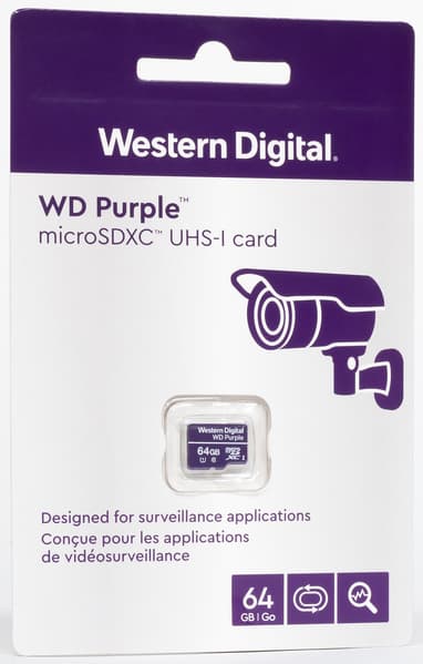 А вот анонс ровно два года назад карт microSDHC и microSDXC (в быту и те, и другие по традиции обычно продолжают именоваться «microSD» — подобно «родительскому» формату; так что и мы это в дальнейшем будем делать везде, где такое не вызывает разночтений) семейства WD Purple некоторых потенциальных покупателей немного удивил. Просто потому, что в ассортименте жестких дисков WD Purple — это как раз модели для видеонаблюдения (те самые — высокой емкости и с оптимизацией под массивы). При этом нельзя сказать, что карты microSD для работы с видео (в общем) и в системах видеонаблюдения (в частности) не используются — на деле всегда применялись. Основная сфера применения — одно- или двухканальные видеорегистраторы: например, автомобильные. Также используются они и в стационарных «несетевых» видеокамерах. Таковые до сих пор применяются там, где нет необходимости городить многокамерную систему. Или в дополнение к таковой — все-таки везде тянуть сети нецелесообразно, а Wi-Fi внутри зданий может работать не лучшим образом. Да и с электропитанием могут быть проблемы в части мест, а мониторинг в реальном времени не требуется — так что камера с автономным источником питания, с которой данные просто забираются «ногами» с определенными интервалами, отлично дополняет картину, позволяя «в случае чего» восстановить события, происходившие, например, в изолированном подвальном помещении. Плюс, такие носители активно используются и другими средствами съемки видео — например, экшн-камерами или дронами.