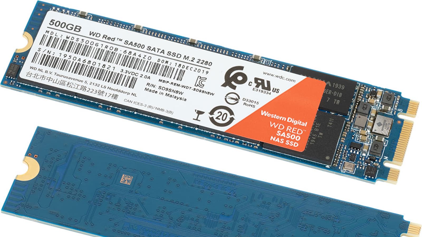 WD Red SA500 на первый взгляд таких проблем не имеет. Емкость от 500 ГБ до 4 ТБ — причем до 2 ТБ включительно есть модификации и в виде односторонних карт M.2 2280, т. е. совместимость идеальная и все нужные варианты есть. Ниже TBW — но и цены намного ниже, чем у IronWolf 110. На практике Red SA500 обычно оказывается лишь на 10%-15% (а не вдвое) дороже «бытового» WD Blue 3D той же емкости — в результате чего к накопителям этой серии присматриваются и те, кому SSD для NAS в общем-то и не нужен. Оправдан ли такой подход и что на деле собой представляет единственная за последнюю пару лет SATA-новинка WD — сейчас и разберемся.