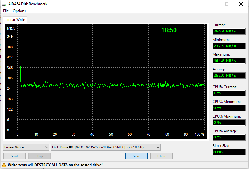 Есть ли смысл от этой практики отказываться сейчас? Есть. Но не для скорости — естественно, что в этом плане Red SA500 ничем не лучше Blue 3D. Зато прошивка оптимизирована под работу в режиме 24/7, Uber — 1 неустранимая ошибка на 1017 бит против 1016 у Blue 3D (ровно на порядок лучше) и время наработки на отказ (MTBF) 2 миллиона часов против 1,75. Последние два параметра для одиночного накопителя не так уж и интересны, но вот более мягкие ограничения гарантии по полному объему записи (TBW) можно будет и заметить на практике (если не повезет).