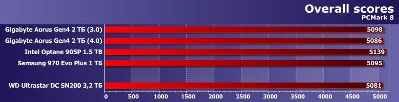 Мы неоднократно говорили, что такие сценарии — лучшее, что может случиться в жизни бюджетных твердотельных накопителей. Как и следовало ожидать, и худшее, что можно придумать для дорогих :) «Блеснуть» способен только Optane, благодаря низким задержкам самой памяти, но и то — лишь в плане потенциальных возможностей, за которые требуется выкладывать вполне реальные деньги. И немудрено — программному обеспечению «тесно» в рамках жестких дисков, но все проблемы снимает любой SSD. А модели для корпоративного рынка и вовсе не оптимизированы для подобных сценариев использования. Есть подозрения, что, например, одного лишь жесткого запрета программного кэширования достаточно, чтобы превратить SN200 в аутсайдера. С чем он, конечно, по мере сил «борется» быстрой памятью, широким интерфейсом и т. д. и т. п., но все равно не может стать лучшим в быту.