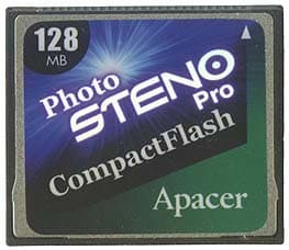 Apacer для CompactFlash выпускает Card Photo Steno и Photo Steno Pro, емкостью по 128 МБ каждая. При этом производитель заявил очень высокие скорости записи и чтения для этих карт: 5 МБ чтение и 2,4 МБ запись для простой карты и 4 МБ для карты с добавкой Pro. Возможно, существует испытательный стенд, на котором эти скорости могут быть достигнуты. Проблема, однако, состоит в том, что быстродействие определяется не только картами, и если компьютер можно модернизировать и установить оптимальное для имеющихся карт устройство считывания, то камеры приходится воспринимать как нечто неизменное и подбирать карты к ним. Уж коль скоро в названиях этих фигурирует Photo, я попытался проверить возможности этих карт при работе с камерами Casio QV 4000, Minolta 7Hi и Canon EOS D60. Эти модели представляют собой типичные 4, 5 и 6 Мп камеры. Владельцы аппаратуры именно этих классов сегодня начинают ощущать дискомфорт, ожидая, когда же камера будет готова сделать следующий снимок. Естественно, я попытался достичь заявленной производительности и при простом подключении карт к компьютеру. Здесь выяснилось, что реально большие скорости удается получить только при подключении через IEEE1394. Несмотря на то, что стандарт PCMCIA должен обеспечивать очень высокие скорости передачи данных, мне на четырех компьютерах с разными контроллерами и разными процессорами не удалось преодолеть барьер в 1,5 МБ. При этом разница в скорости записи и чтения все равно наблюдалась.