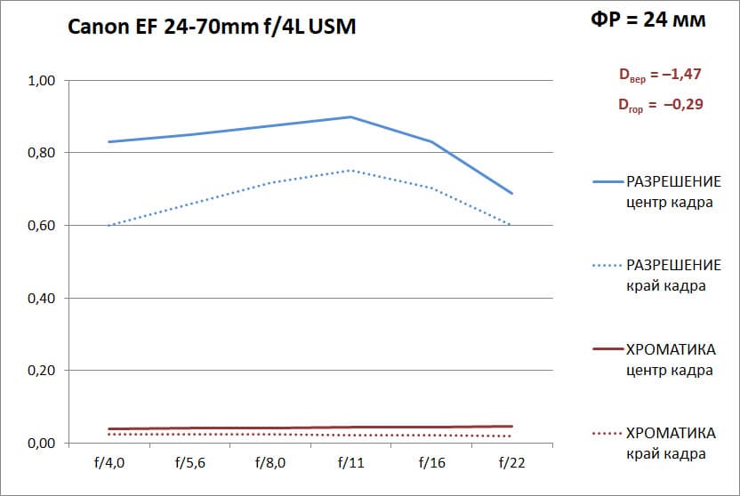 Перед тем, как перейти к практическому тесту Canon EF 24-70mm f/4L IS USM, мы подведем итоги лабораторных испытаний:
