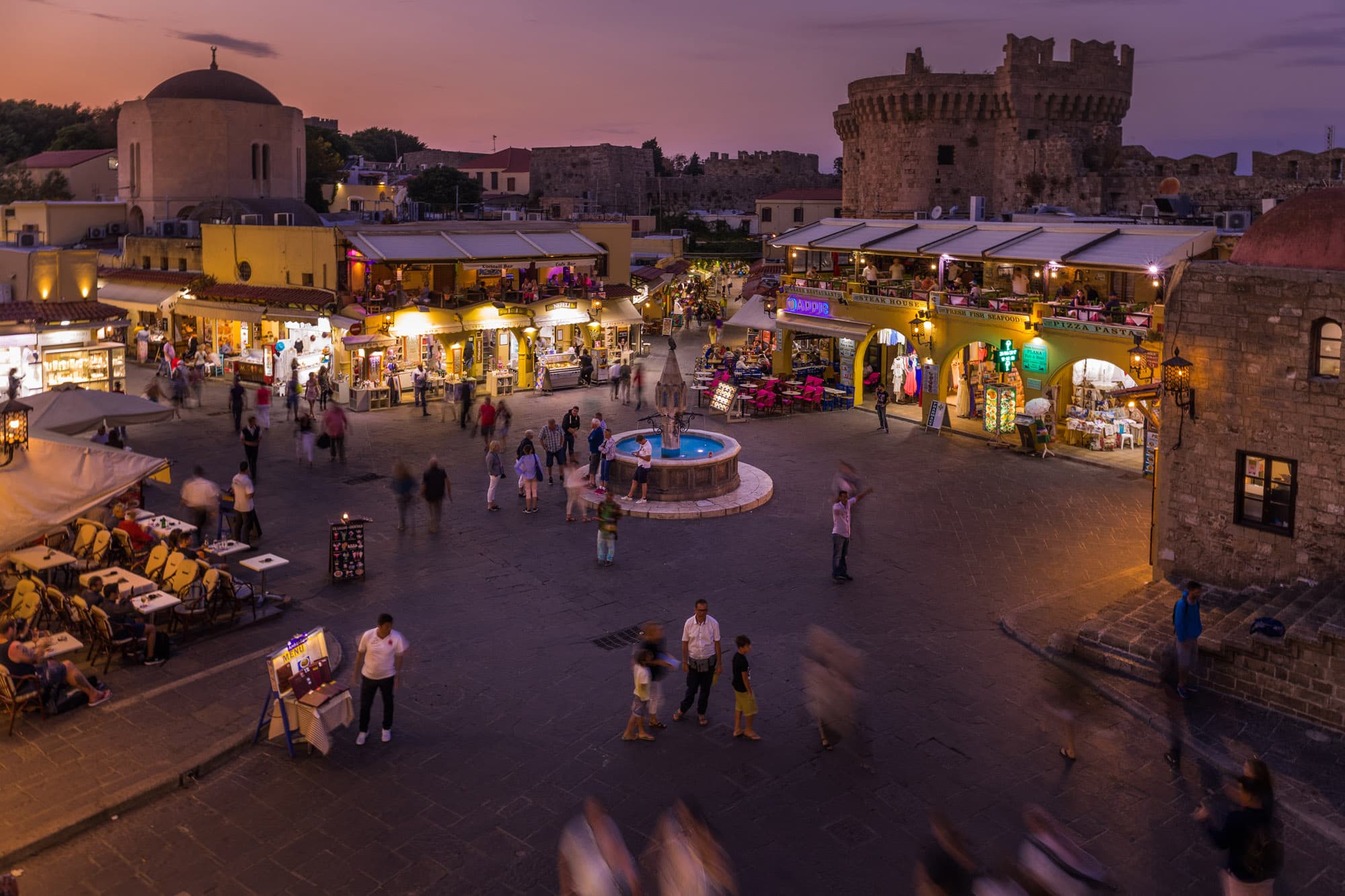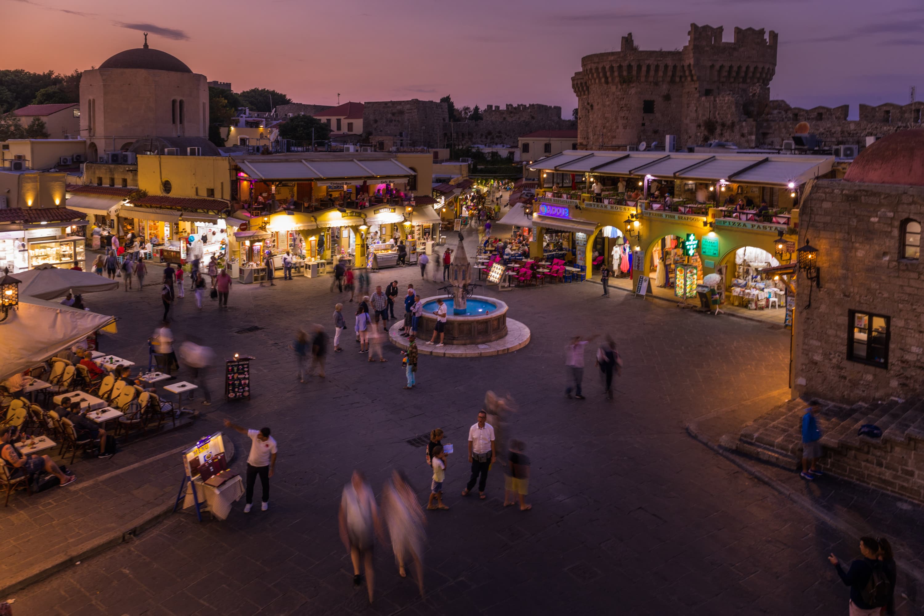 Настал черед проверки в действии работы оптического стабилизатора. Учитывая отсутствие в объективе действительно больших фокусных расстояний, я рискнул предположить, что на практике стабилизатор окажется наиболее полезен при вечерней съемке пейзажа. Вместо того чтобы поднимать светочувствительность с базового ISO 100 до ISO 1600, что, как ни крути, для пейзажа не является оптимальным значением, мы попробуем компенсировать 4 ступени экспозиции работой стабилизатора. Объект съемки — центральная площадь старого города в крепости на острове Родос. Хотелось непременно дождаться паритета яркости вечернего неба и уже включившейся подсветки. Посмотрим, что удастся снять, не прибегая к помощи штатива, но снимая при этом на прикрытой диафрагме. В итоге, конечно, мне удалось из спортивного интереса получить снимок, четкость которого я бы оценил на 9 из 10, при следующих параметрах кадра: ISO 200, ФР 24 мм, F11, выдержка 0,8 с. Но для достижения этого результата мне пришлось предпринять более 10 попыток, пользуясь всеми мне известными способами получения стабильного кадра — удобная поза, локти к корпусу, съемка серией. В работе я бы не стал рассчитывать на все 4 ступени компенсации, так как без просмотра снимка на большом экране есть риск, что ни одного действительно четкого кадра вы не получите, если только вы не снайпер с железными руками. На 3 ступени уже можно надеяться, если не мешать работе стабилизатора. Если выдержка длиннее оптимальной для текущего фокусного расстояния на 2 ступени, то практически все кадры будут стабильными.