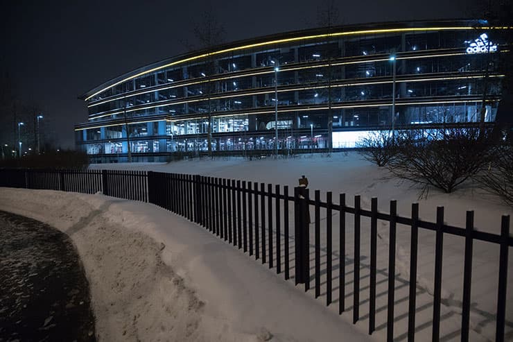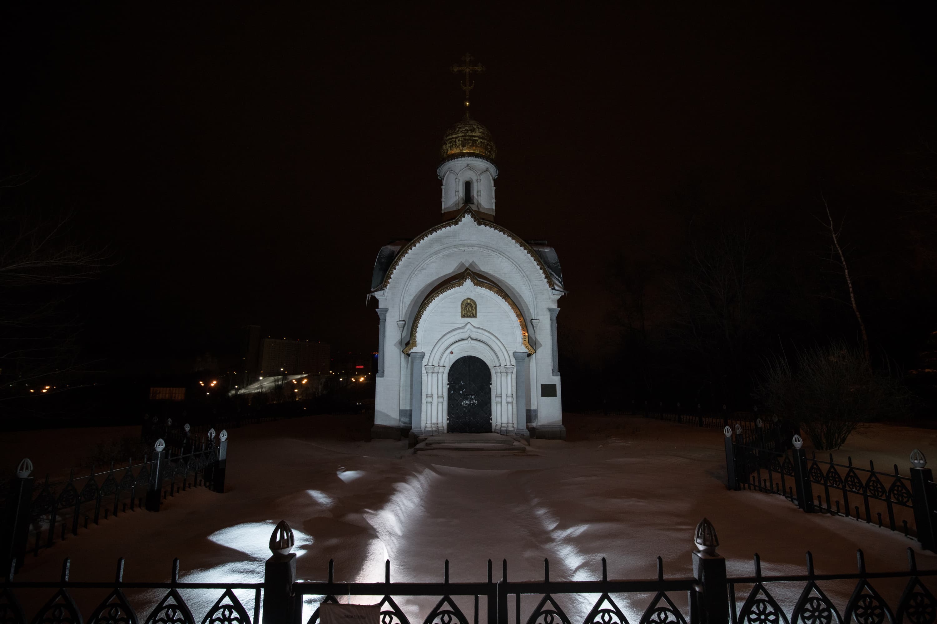 Вот, к примеру, зимняя архитектурная проба при свете четырех импульсных источников Godox 685TT по 50 Вт·с каждый, установленных на расстоянии 9 м от объекта. Для их запуска использовались беспроводной триггер Godox FC-60T и ресиверы Godox FC-60R, а съемка производилась с рук, без штатива.
