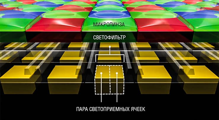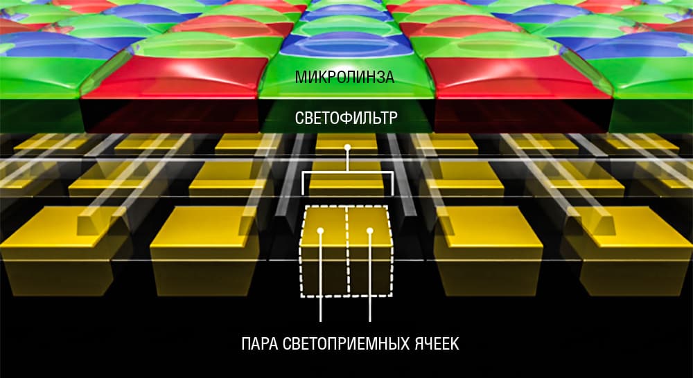 Сенсор у Canon EOS 5D Mark IV совершенно новый. Каждый из 30,4 млн эффективных пикселей изображения, расположенных под одной микролинзой и светофильтром, представлен парой светоприемных ячеек.