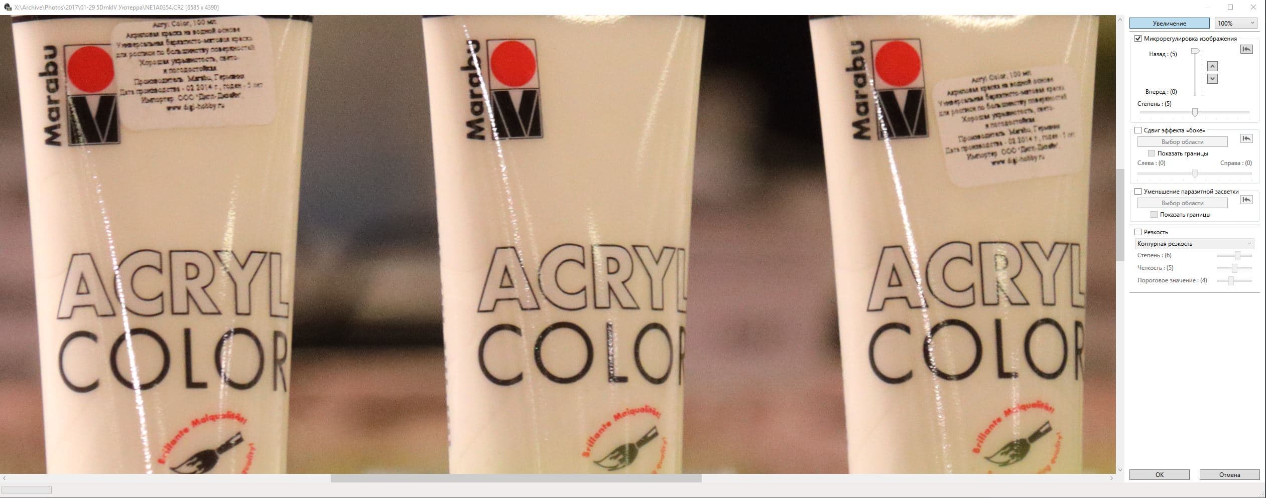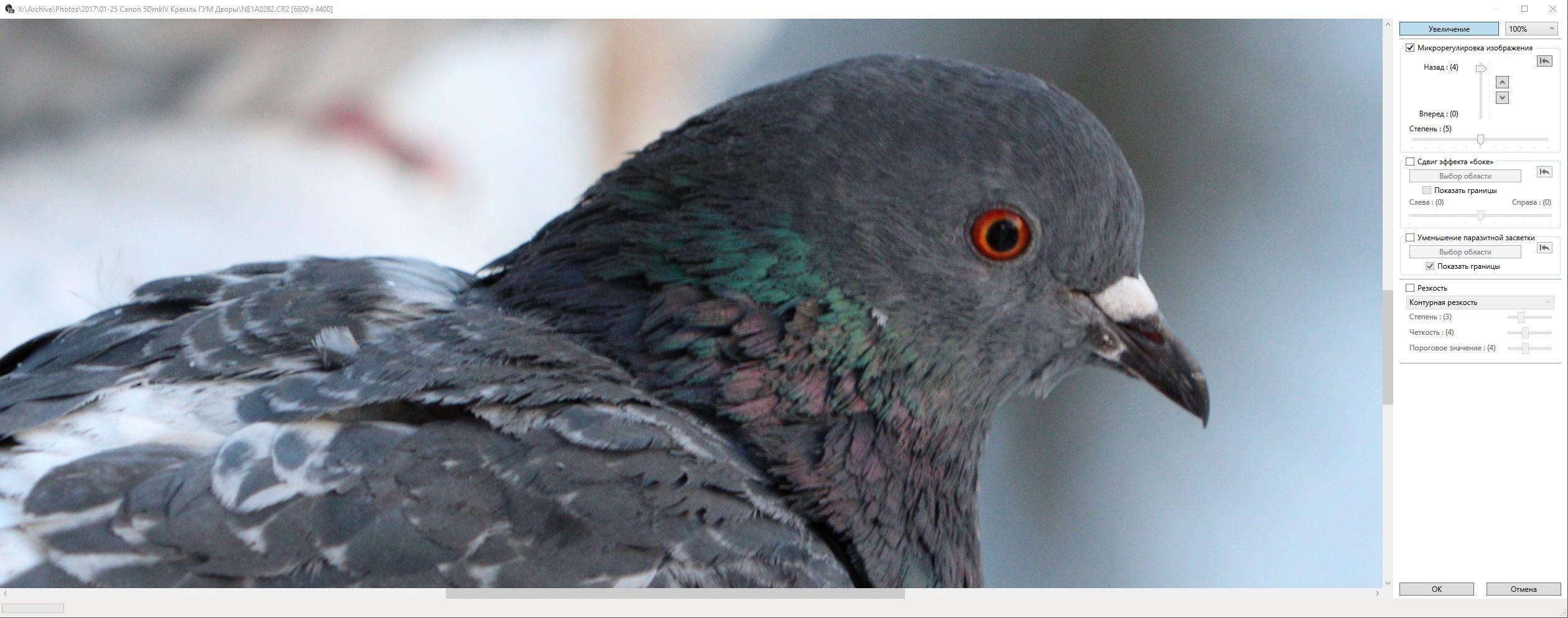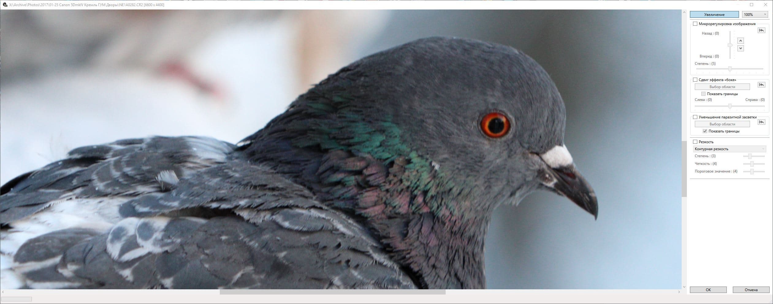 Шарпинг в Digital Photo Professional 4.5 с использованием Dual Pixel RAW: