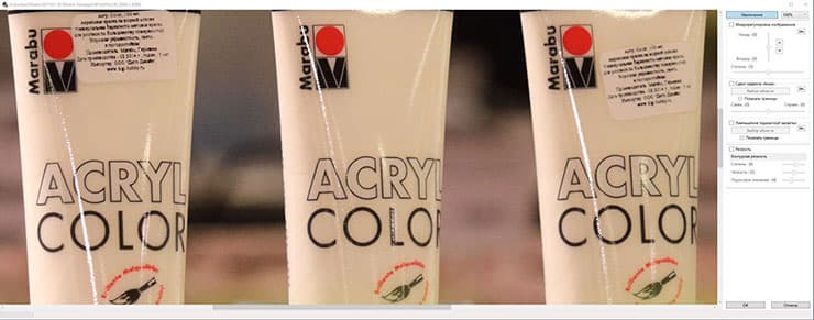 Шарпинг в Adobe Camera RAW (эффект = 50; радиус = 1,8):