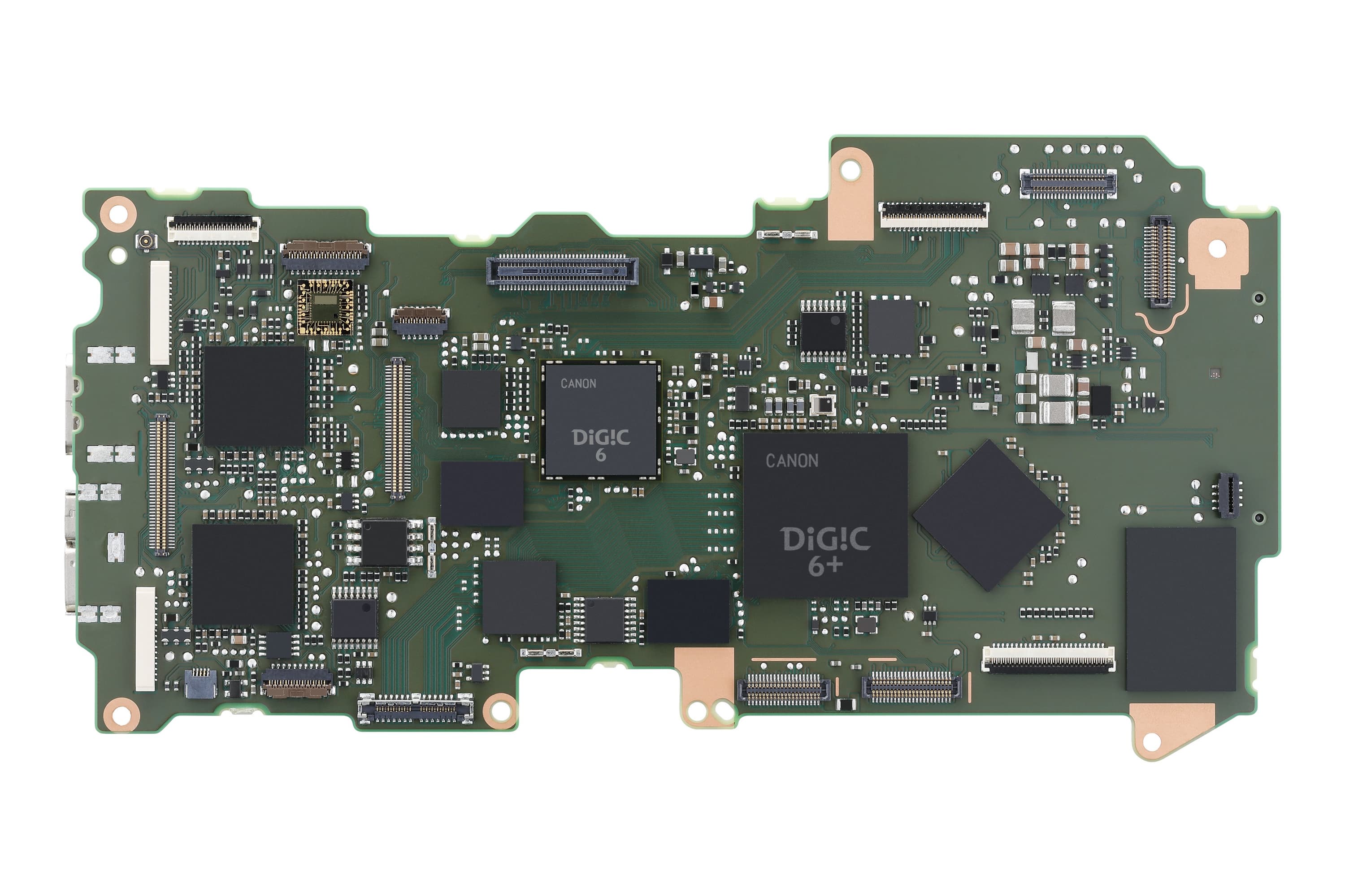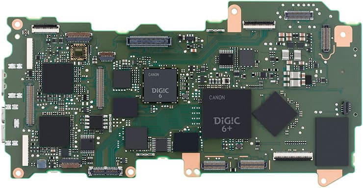 Считывание данных с основной матрицы камеры, формирование изображения и его коррекция производятся процессором Digic 6+. Его возможности позволяют обеспечить работу аппаратного оптимизатора оптики (Digital Lens Optimizer), производить съемку видео в стандарте 4К с частотой 30 кадров/с, а также применять более совершенные алгоритмы подавления шумов, в том числе понижать количество и яркость цветовых артефактов при высоких значениях ISO. Благодаря последнему обстоятельству структура шума должна становиться более приятной для глаза.