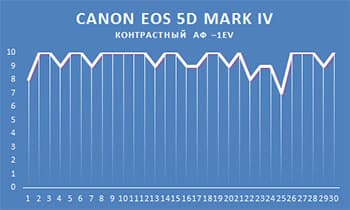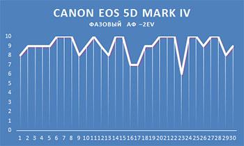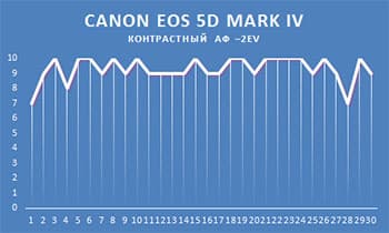 Бывает так, что камера «не вытягивает» съемку при освещении −2 EV. Для Canon EOS 5D Mark IV это не стало проблемой, скорость и точность по сравнению с результатами теста −1 EV снизились незначительно.