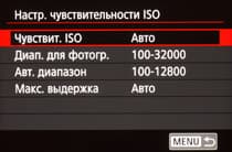 | Светочувствительность | ISO 100 — ISO 32 000; в расширенном режиме: ISO 50 — ISO 102 400 |