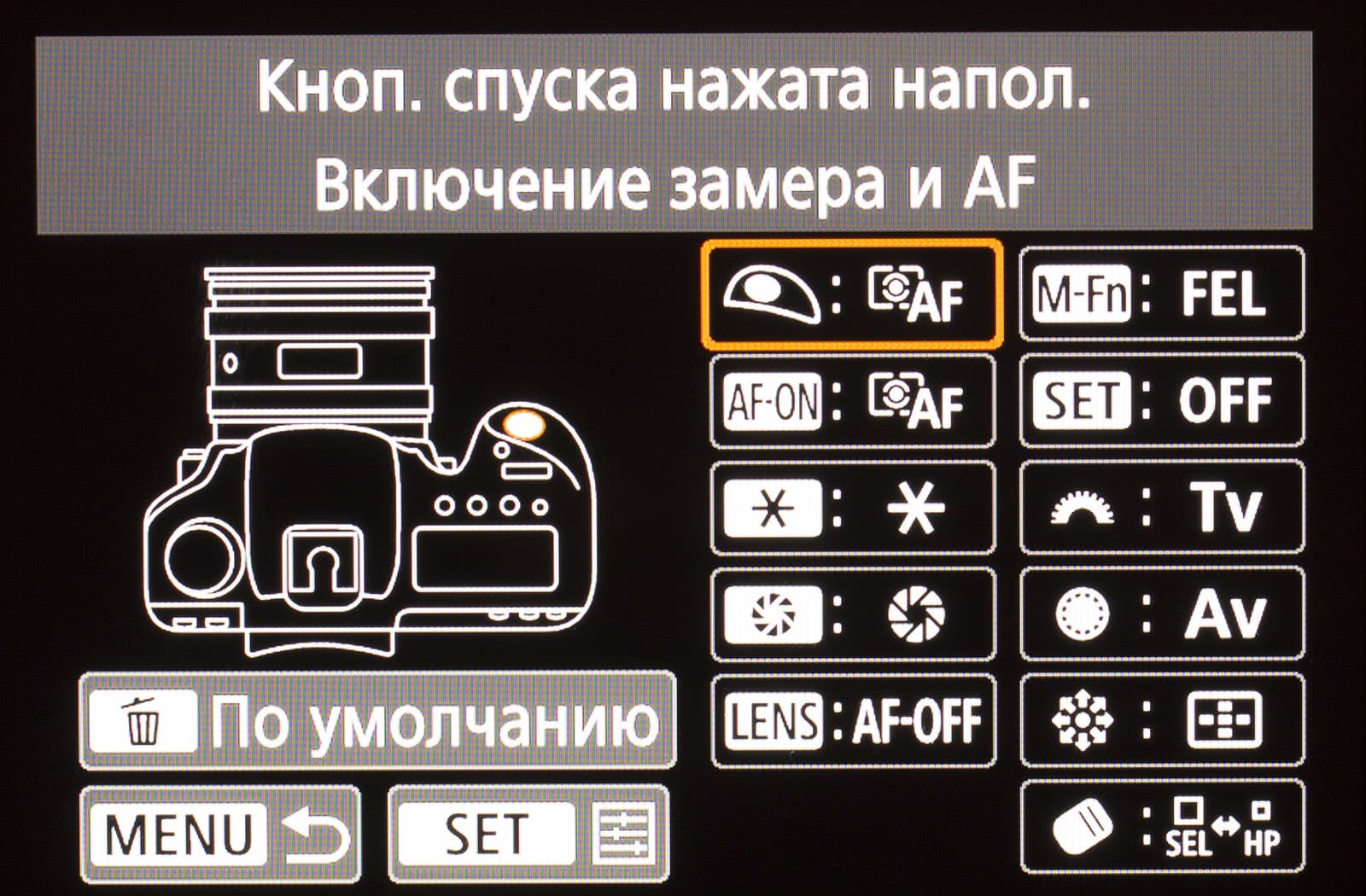 | Управление фокусировкой | Фазовая TTL-фокусировка, 61 точка, максимум 41 точка крестового типа — при f/2,8, включая 5 точек двойного крестового типа. Рабочий диапазон: от −3 до 18 EV. В режиме Live View фокусировка Dual Pixel CMOS AF с возможностью определения лиц. |