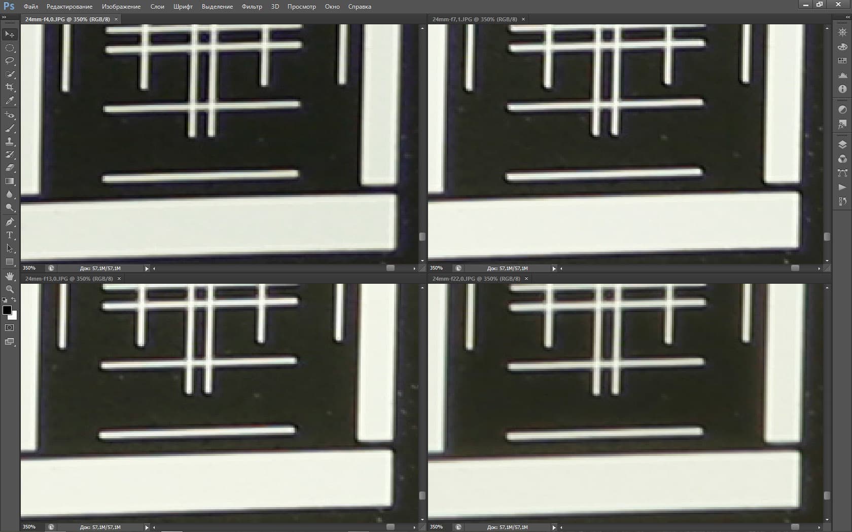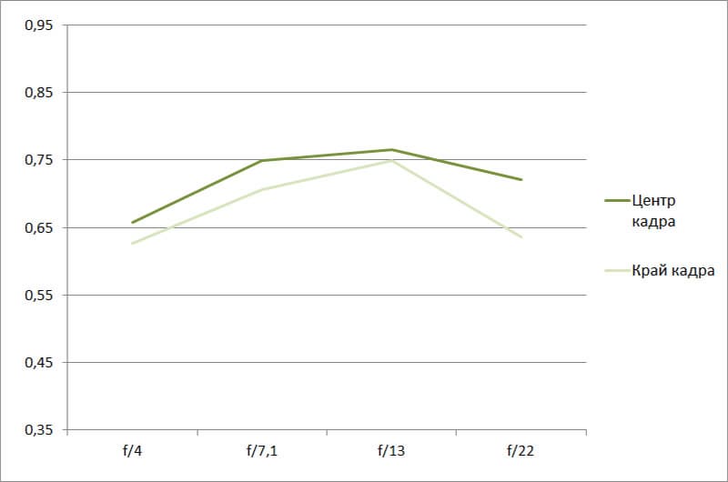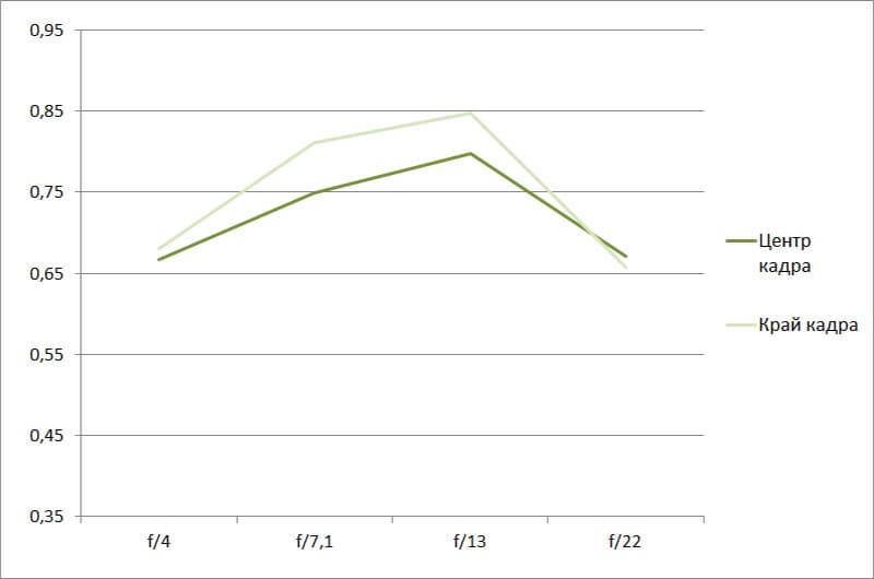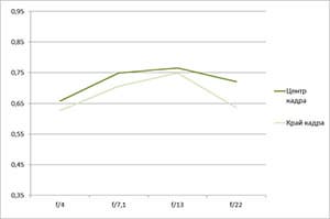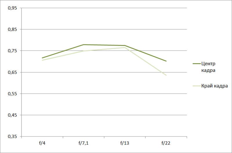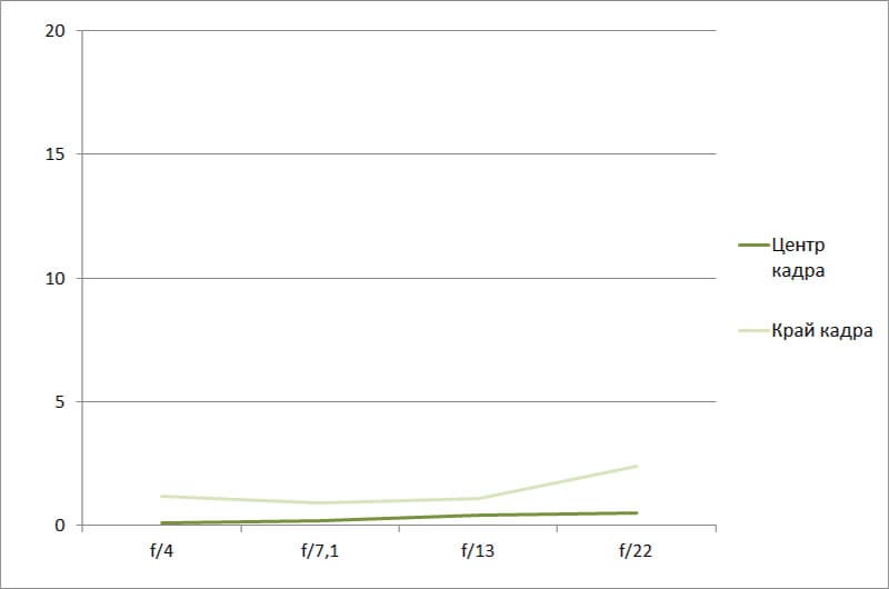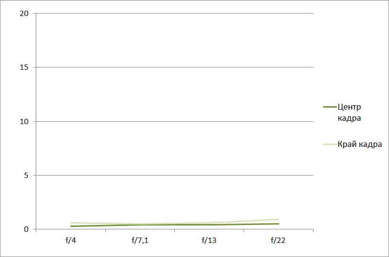 | Замеры сделаны на f/4 — f/7,1 — f/13 — f/22. | |