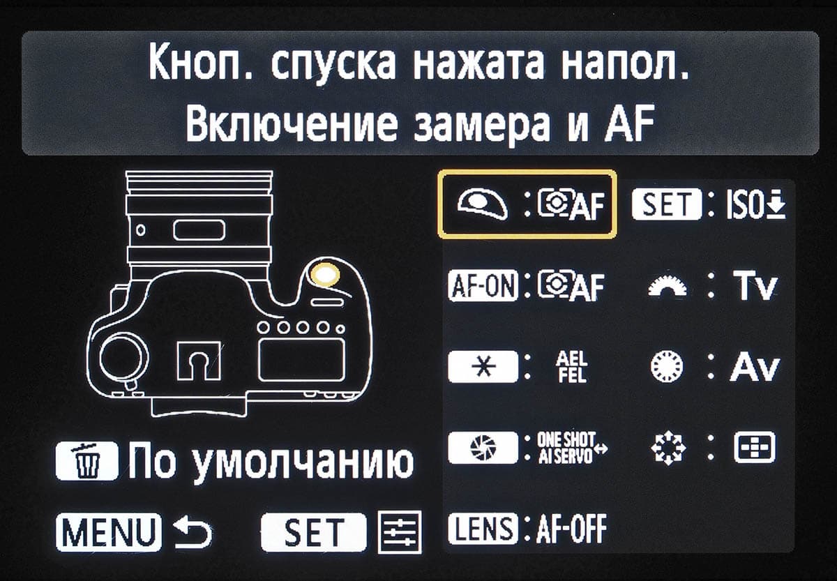 Это проявляется в значках на диске выбора режима съемки, меньшем количестве кнопок на задней панели — все они сосредоточены под правой рукой, а левой как будто и работы не нашлось. Мы уже видели подобное расположение кнопок у модели EOS 70D, но там был откидной экран, поэтому и пришлось перенести все кнопки под правую руку.