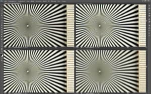 Переходим к среднему фокусу и видим, что очень заметная «вертикальная бочка» превратилась в умеренную «вертикальная подушку». Здесь тоже дисторсия проявляется больше по вертикали — D = −1,99, а по горизонтали едва заметна — D = −1,02.
