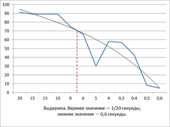 Методика тестирования стабилизатора подробно рассмотрена в одной из прошлых статей. Тестирование ведется на фокусном расстоянии 50 мм, когда для получения резких кадров желательно использовать выдержку не длиннее 1/50 секунды. Стаблизатор позволяет использовать более длинную выдержку, «дарит» фотографу дополнительные ступени экспозиции.