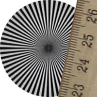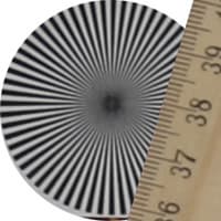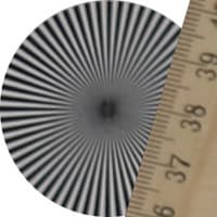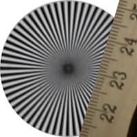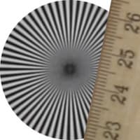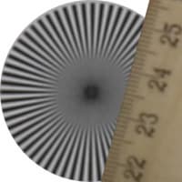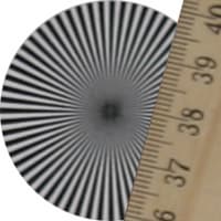 - Тестовая мишень — это «таблица офтальмолога», уменьшающийся шрифт на листе А4, максимальный кегль —150 пт, минимальный — 6 пт. Всего 10 строк.