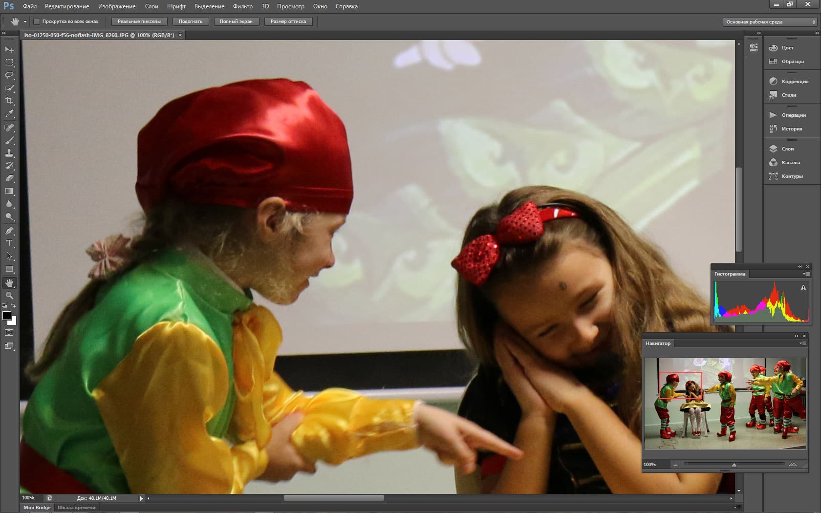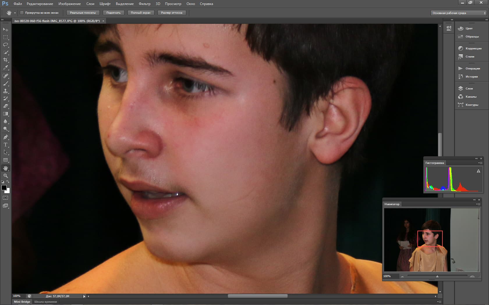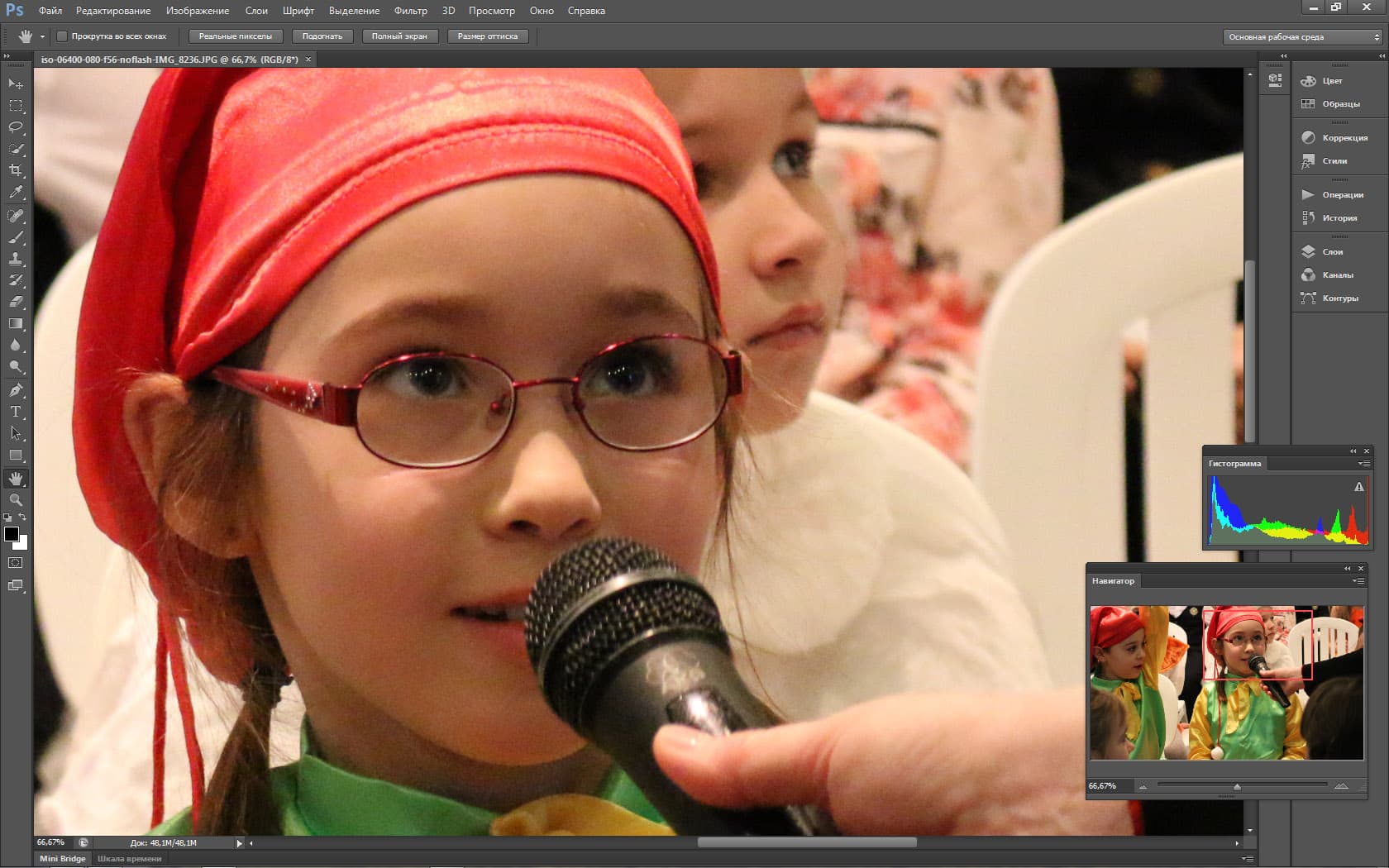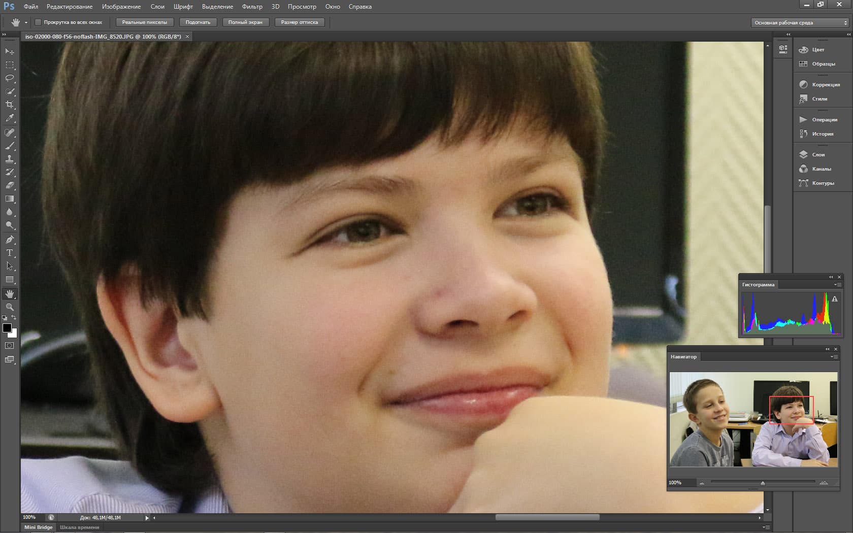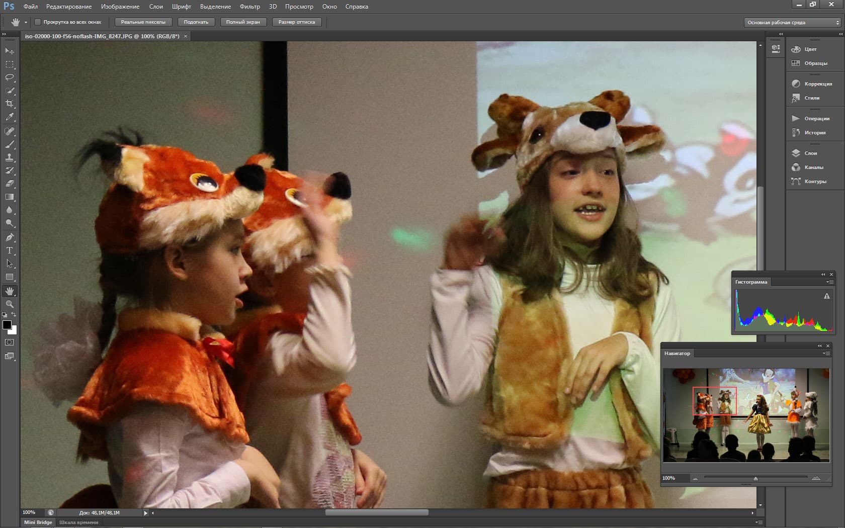 Хотя здесь, возможно, дело в другом. Давайте сравним две фотографии. Обе сделаны с ISO 320, обе — со вспышкой и фокусным расстоянием примерно 50 мм. Никакой «шевеленки» нет — это спокойная съемка, где модели не дергаются и выдержки 1/50 вполне достаточно. Обе фотографии примерно одного плана, среднего. Но при этом у первой прорисовка деталей намного лучше, чем у второй. Она все равно не идеальная, зеркалки на ISO 320 обычно «рисуют» лучше. И похоже, автофокус не промахнулся ни в первой фотографии, ни во второй. Но!!! В дело вмешалась «математика». Насколько я понимаю работу Canon EOS 70D, здесь камера выделила главный объект кадра, и попробовала его «дорисовать». В первом случае это удалось неплохо, во втором — так, на «троечку». Очень похоже, что камера включает «рисующие» алгоритмы уже на невысокой чувствительности (наши тесты на «шумы» это подтверждают), чтобы получить примерно одинаковую картинку в широком диапазоне чувствительности — от 320 до 3200.