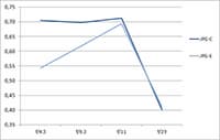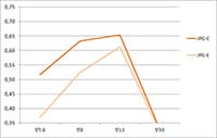 Верхняя линия на графиках (с насыщенным цветом) показывает зависимость в центре кадра. Нижняя (бледная) — на краю.